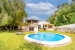 The true highlight of this villa is its enchanting outdoor space. A lush garden surrounds the private pool, creating a serene setting ideal for relaxation. A covered terrace offers a chill-out area and a dining table, perfect for enjoying a morning coffee or an evening meal in tranquil surroundings.