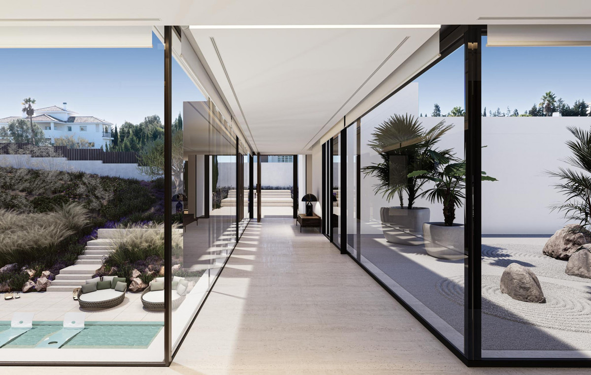 Nestled in the prestigious enclave of Sotogrande, this exceptional luxury villa offers a stunning resort-style living experience. Set across two elegant floors, the property features an open-plan layout that perfectly blends modern design with natural surroundings. The main level boasts a sleek contemporary kitchen, spacious dining area, and a bright living room—all flowing seamlessly together in a light-filled environment. Expansive glass doors open onto a private outdoor oasis, where a serene atmosphere awaits.