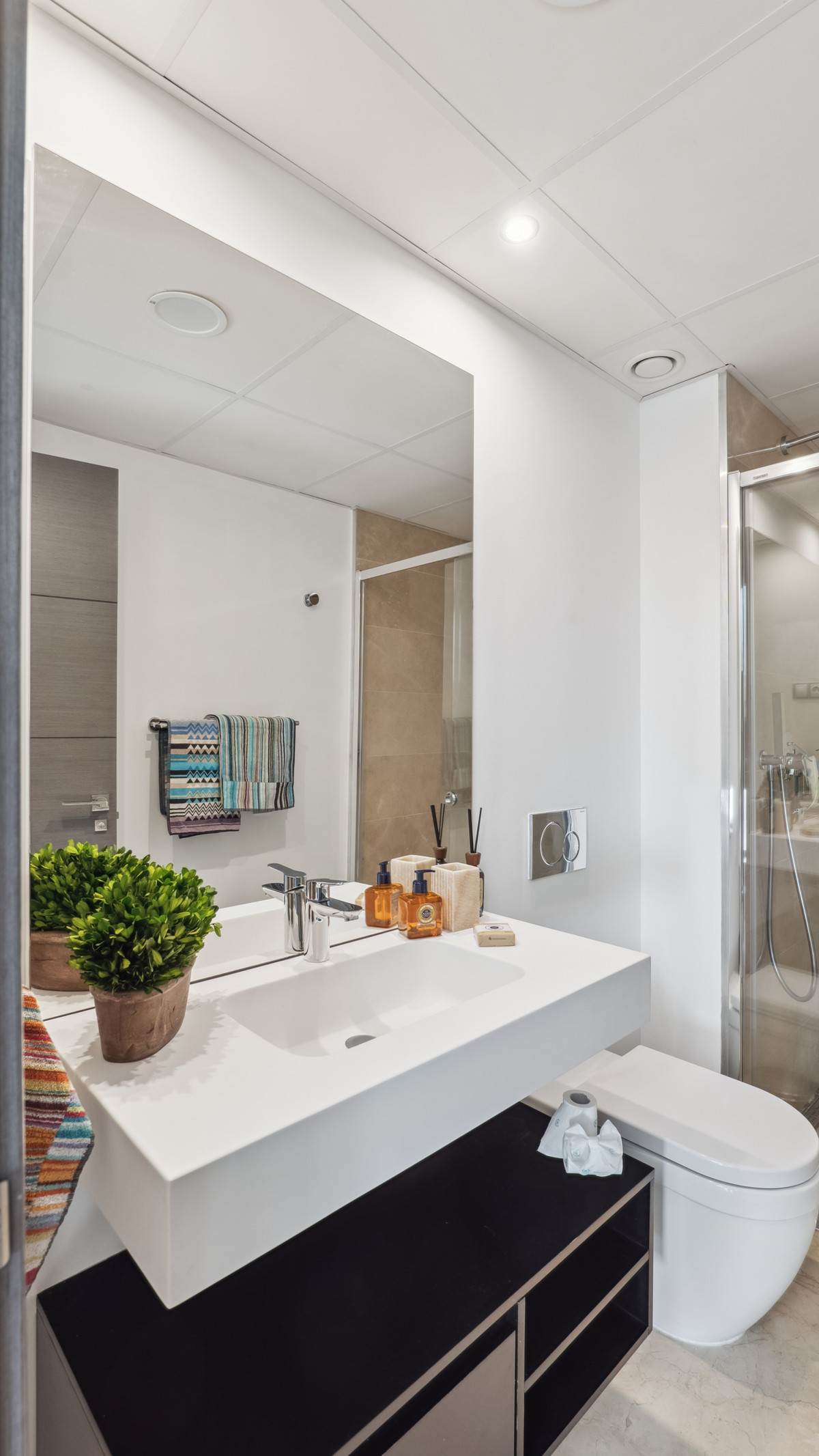 Upstairs, you’ll find three spacious bedrooms, including a master suite with its own terrace and breathtaking views of La Concha mountain and the Mediterranean Sea. On the third floor, a spectacular rooftop terrace awaits—complete with space for a jacuzzi, sun loungers, and lounge areas to soak up the sun all day.
