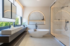The villa features 5 beautifully appointed bedrooms, with the possibility to create additional rooms to suit your needs. A standout feature is the expansive open-plan basement, flooded with natural light and offering endless possibilities—ideal for a private cinema, gym, wellness area, or even conversion into a fully independent guest apartment.