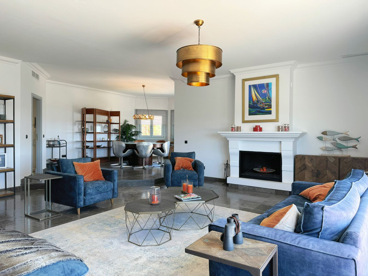 Outside, enjoy a private pool surrounded by landscaped gardens, a chill-out zone with gas fireplace, barbecue area, summer dining space, and beach bar—perfect for soaking up the Mediterranean lifestyle.