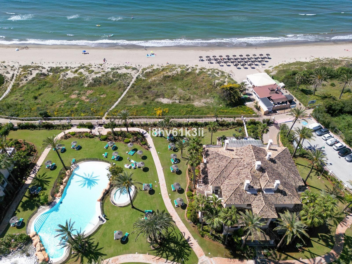 The luxurious three-bedroom ground-floor apartment, front line beach in Los Monteros Playa, is finished to the highest of standards and taste. The property has just been beautifully refurbished including a brand new high-tech kitchen.