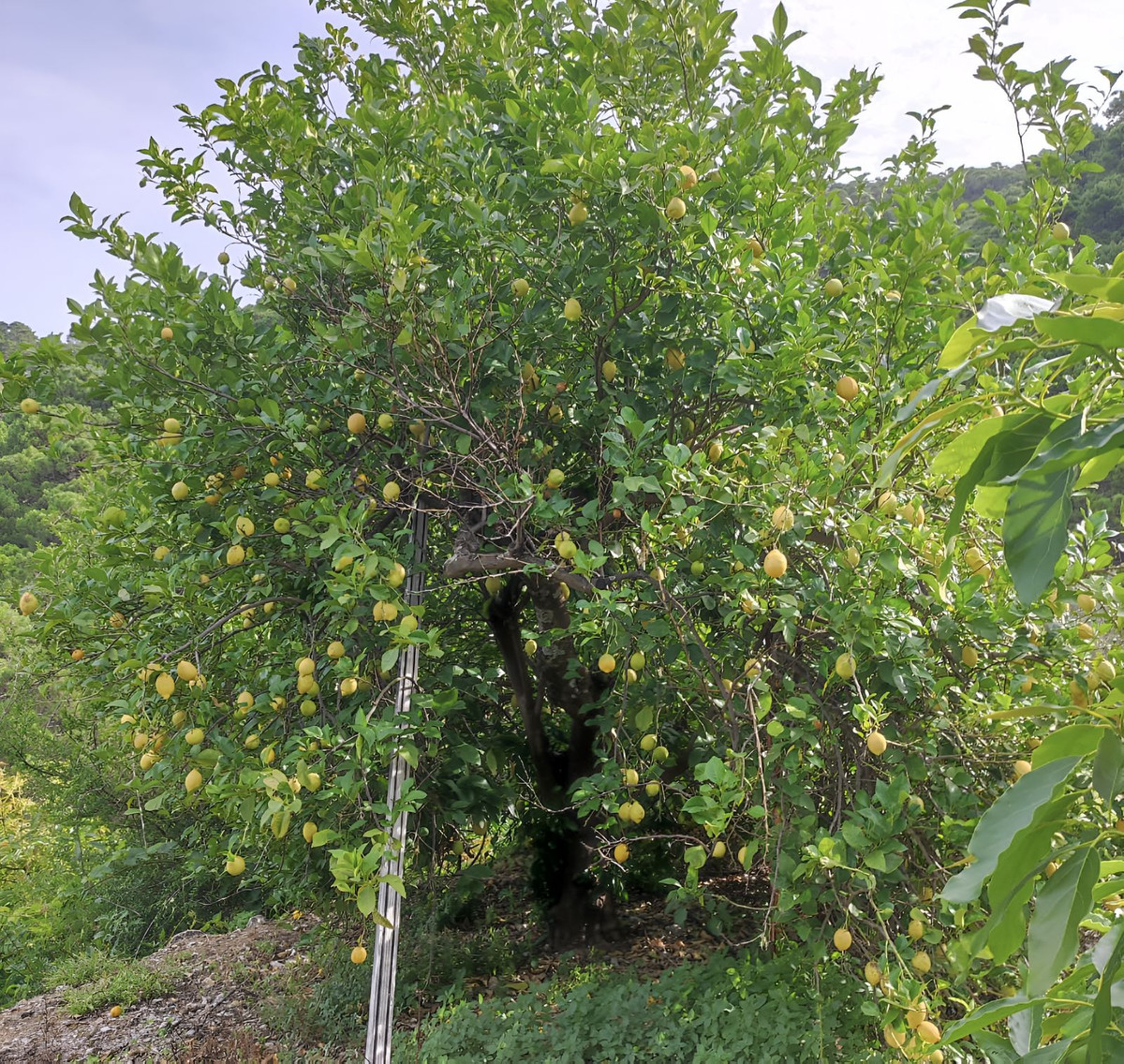 - Carob, plum, almond trees, a fig tree, grapevine, and a cultivated vegetable garden