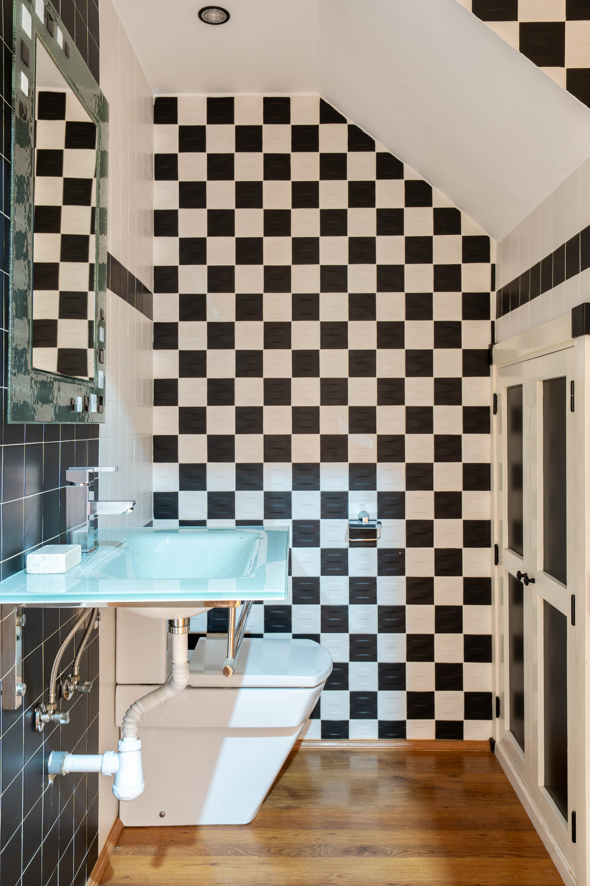 Originally a 3-bedroom property, it has been reconfigured to offer 2 spacious bedrooms and a large bathroom upstairs. On the ground floor, you'll find a cozy living room with a fireplace, independent kitchen, guest toilet, and air conditioning.