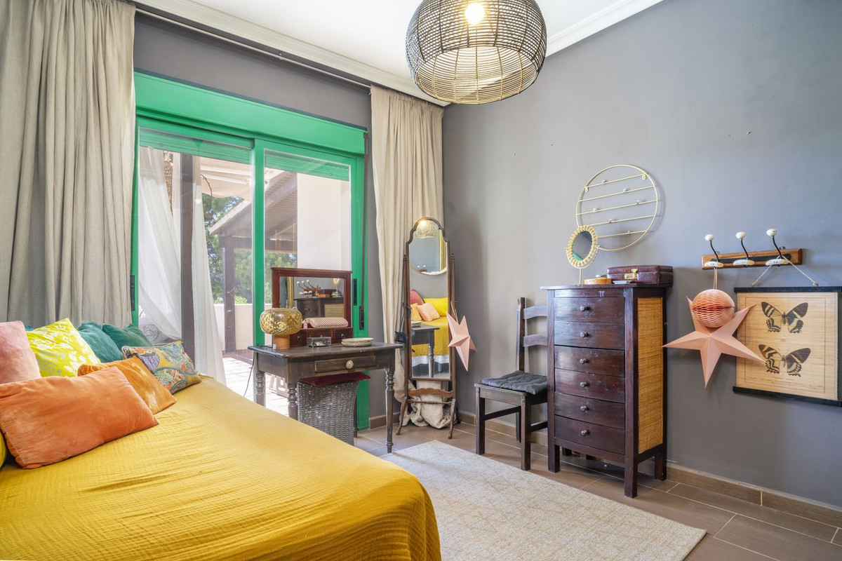 Tranquility awaits you in this exceptional property, located in the best position within an exclusive gated community. With panoramic views of the majestic mountains and lush hills, this property offers an unparalleled living experience. Enjoy stunning sunsets from the west-facing terrace, complete with a charming pergola, perfect for relaxing outdoors or entertaining guests.