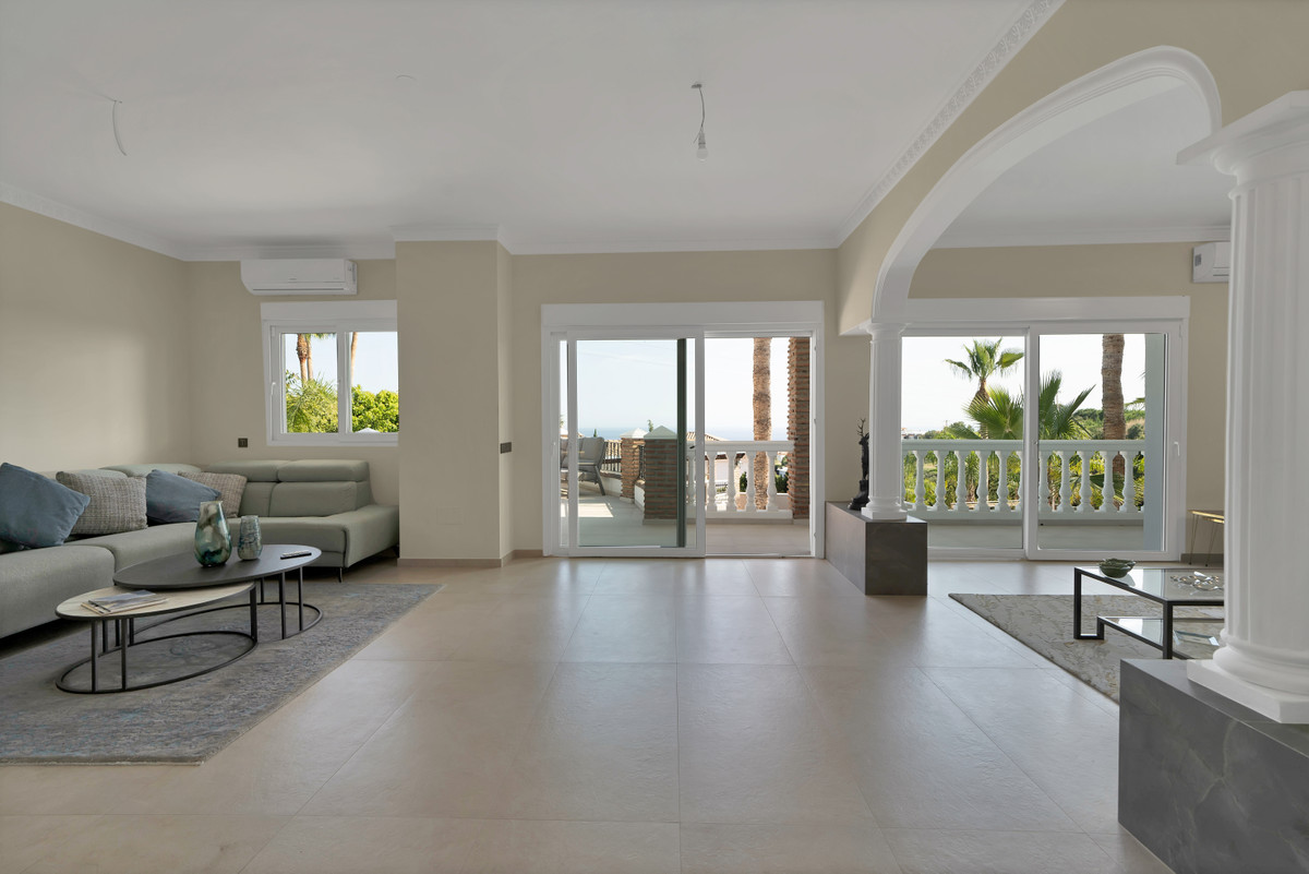A Royal Retreat in La Capellanía, BenalmádenaWhere panoramic views, timeless design, and tranquil luxury uniteMore than just a home, this villa is a sanctuary of space, elegance, and comfort. Nestled in La Capellanía, one of the Costa del Sol’s most prestigious residential areas, it offers a perfect blend of seclusion and convenience. Minutes from Benalmádena Pueblo, Fuengirola, and the coastline, the area also features top international schools, golf courses, and beaches. Málaga Airport is just 15 minutes away.As you pass through the gates, you\'re greeted by a serene, landscaped pond and lush Mediterranean gardens—setting the tone for the refined lifestyle that awaits. A stone pathway leads to the main entrance, flanked by mature palm trees. To the right, ample outdoor parking for four cars and a covered garage for three more.At the heart of the estate lies a spacious pool with sweeping sea and garden views. To the south, a stylish barbecue and al fresco dining area provide the perfect setting for memorable evenings.The Main Residence – For Living, Entertaining, and Family LifeInside, the main villa features a bright and spacious living area opening onto a large south-facing terrace—ideal for morning coffee or hosting guests. To the right, a cozy lounge with a fireplace offers a warm ambiance, while a separate TV room on the left makes the space both elegant and functional. This level also includes a guest WC and storage room.The chef’s kitchen is open-plan, modern, and fully equipped with high-end appliances and an island. A connected utility room houses laundry appliances, refrigerators, and a pantry. The adjacent dining room with large windows also opens onto the terrace.This floor includes two guest bedrooms with built-in wardrobes and a shared, stylish full bathroom.Upstairs, the private quarters offer access to two panoramic terraces overlooking the pool, garden, and coastline. The master suite and another bedroom include en-suite bathrooms, while a third bright bedroom and another full bathroom complete the level—perfect for families and guests seeking space and privacy.Independent Residences – Privacy, Versatility, and Income PotentialWhat makes this property truly unique is the inclusion of two self-contained residences on the garden level, each with a private entrance and direct access to the pool and gardens:The first residence has been fully renovated and furnished, featuring an open kitchen and two en-suite bedrooms—ideal for visitors, extended family, or vacation rentals.The second residence also offers an open kitchen and two en-suite bedrooms and can serve as staff quarters or be converted into a private gym, home cinema, or wellness suite—offering limitless potential.An Exceptional OpportunityThis fantastic Villa is more than a luxury property—it’s a lifestyle investment. Whether as a family residence, a multigenerational estate, or a high-end rental opportunity, it offers unmatched flexibility and timeless elegance.Contact us today for more information or to schedule a private viewing of this exceptional estate.The abbreviated information document is available to you. Expenses: Taxes (ITP or VAT+AJD) + Notarial and registration expenses.NG1.