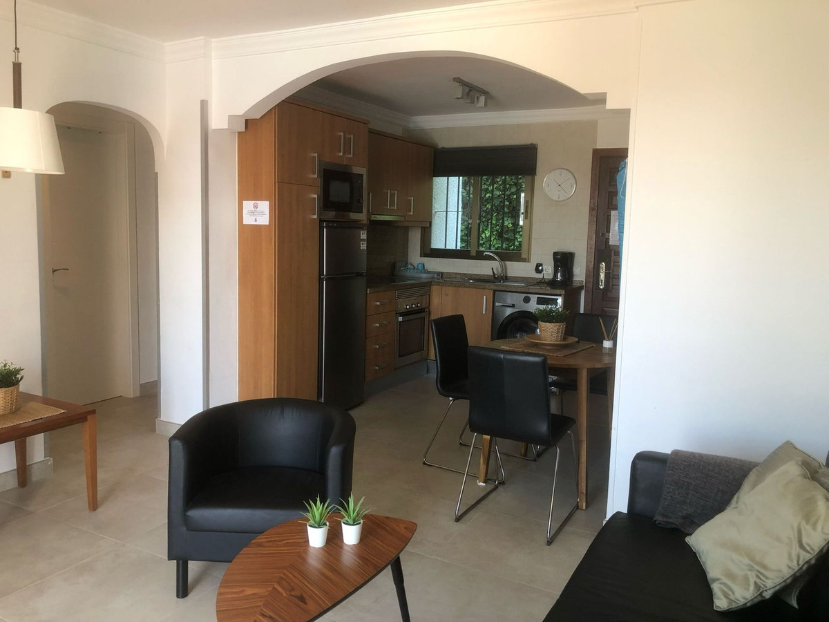The apartment has 2 bedrooms sharing 1 bathroom and has a good size living room leading to the terrace that gives you direct access to the pool and garden area. Both bedrooms have electric blinds and fitted wardrobes.