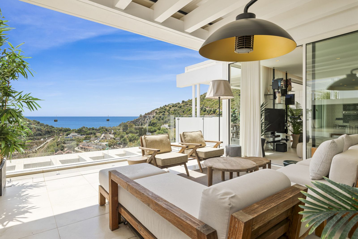 Bathed in natural light, this sophisticated home boasts a spacious sun-drenched terrace with a sought-after southwest orientation, offering uninterrupted views of both the Mediterranean Sea and the Sierra de las Nieves mountains. Floor-to-ceiling sliding glass doors connect the open-plan living area and the master bedroom directly to the terrace, creating a seamless indoor-outdoor flow.