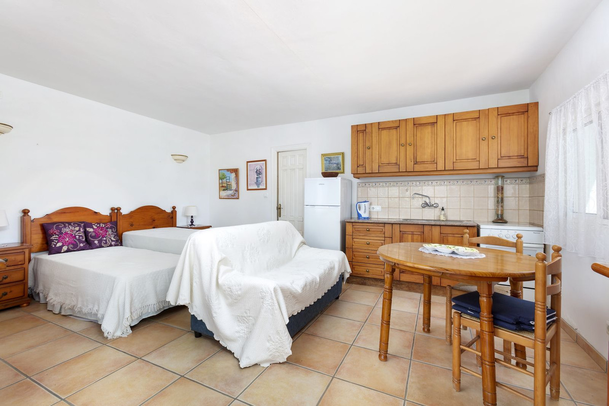 This finca set in an elevated position has impressive mountain views all around it. The garden is split into different areas each with its own beautiful vibe. Stylish barbecue area by the pool is great for relaxing and welcoming guests. Main house has three bedrooms plus two bathrooms. The guest house has a large studio plus lovely internal winter terrace. Property and pool need a bit of attention. Excellent location being only a few minutes drive to both Pizarra and Alora. Malaga is 30 minutes away.