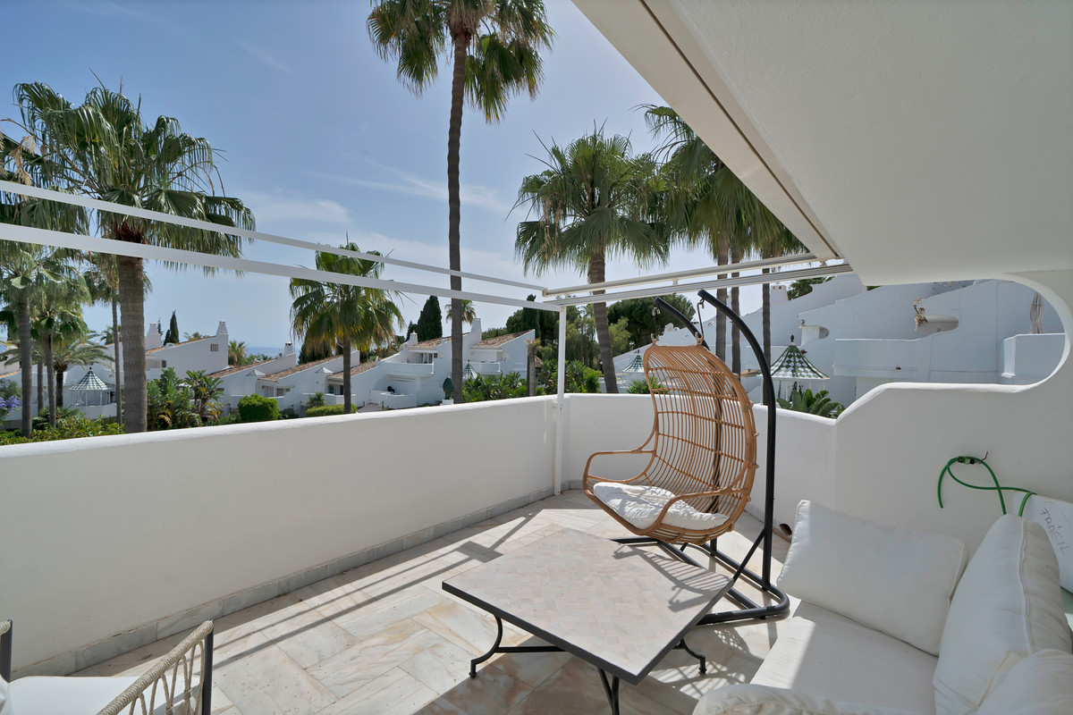Town House for sale in Camojan Blanco, Marbella with 4 bedrooms, 4 bathrooms, 4 en suite bathrooms and with orientation south, with communal swimming pool and private garden. Regarding property dimensions, it has 233 m² built. Has the following facilities garden view, pool view and partial sea views.