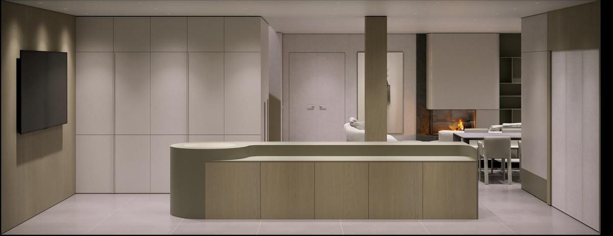 The ground floor features an open-plan layout, seamlessly integrating the living room, kitchen, and dining area. Floor-to-ceiling Reynaers panoramic windows flood the space with natural light while offering stunning views of the surrounding landscape.