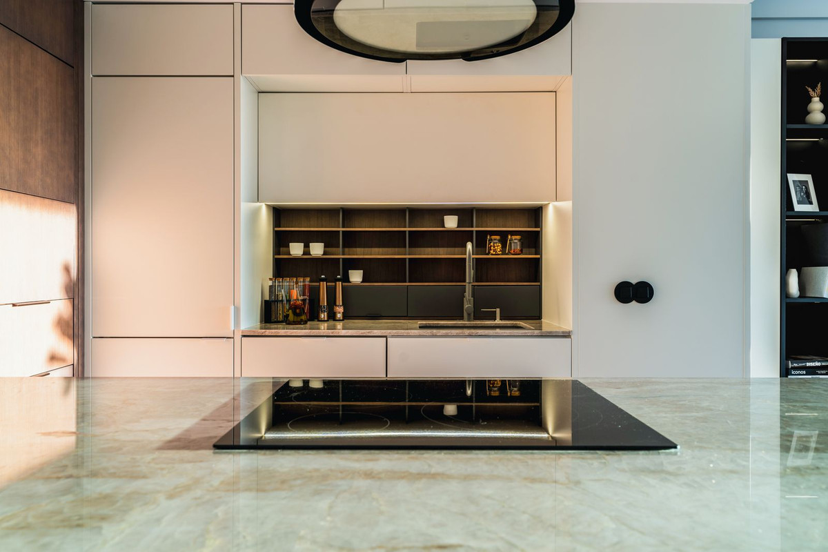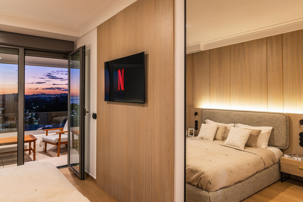 The home is sold fully furnished, curated by renowned designer Loriini with every detail—furniture, finishes, and décor—selected to create a cohesive, sophisticated space. Premium materials are used throughout, including high-quality porcelain flooring, Cortizo windows, and electric aluminium shutters. An aerothermal heating/cooling system ensures year-round comfort.