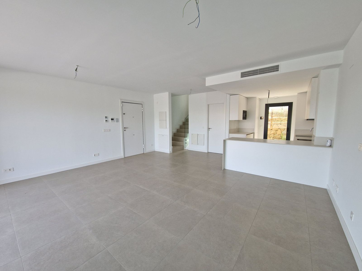 Brand new semi detached villa near Atalaya golf course and within easy reach of Atalaya golf club and El Paraiso golf club. The property faces west and has it's own private parking space within the private plot of the house. One enters a spacious living dining room with open plan kitchen and this whole area flows gently out to a large sunny terrace with views of the surrounding countryside. On this level there is a guest bathroom. Upstairs is the master bedroom with a bedroom ensuite and another bedroom which shares a terrace with the master bedroom. There is a third bedroom which shares a bathroom with the second bedroom.