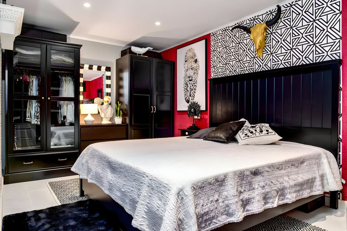 The second floor consists of two bedrooms, each with its own balcony boasting panoramic