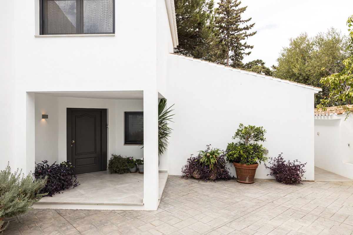 This exquisitely refurbished villa enjoys an enviable location just 180 meters from the pristine sandy shores of Las Chapas Playa. Offering five sumptuous bedrooms and four impeccably appointed bathrooms, it is nestled on an expansive, south-west-facing plot, with every convenience and leisure facility merely a short walk away.The outdoor living experience is unparalleled, featuring a generously proportioned entertainment area complete with a state-of-the-art kitchen and bar. Equipped with both gas and charcoal barbecues, a flat-screen TV, and a cozy fire pit, this sophisticated space is designed for all seasons. Ingeniously, the area can be fully enclosed to ensure year-round comfort.Meticulously refurbished with uncompromising attention to detail, the villa exudes timeless elegance and modern functionality. The main floor unveils a luminous, double-height living room with soaring floor-to-ceiling windows, seamlessly connecting to a partially covered terrace. Adjacent lies a fully equipped kitchen with a charming breakfast nook, accompanied by convenient access to the laundry and storage rooms. This level accommodates three thoughtfully designed bedrooms—two sharing a bathroom and one with an ensuite.Ascending to the first floor, you will find two opulent ensuite bedrooms, including one with an expansive walk-in wardrobe. A sun-drenched terrace on this level captures natural light throughout the day, offering an idyllic retreat.Distinctive wooden accents, handcrafted by a masterful local artisan, lend a touch of bespoke artistry throughout the home. The villa further benefits from underfloor heating, ensuring year-round comfort.The lushly landscaped garden is a haven of tranquility, boasting a 10x5 metre heated pool complete with a Jacuzzi, surrounded by ample space for outdoor recreation and leisure. Parking for up to three vehicles adds to the convenience of this remarkable property.Situated within a leisurely stroll of the beach, this villa represents a harmonious blend of luxury, comfort, and location—a true coastal masterpiece.