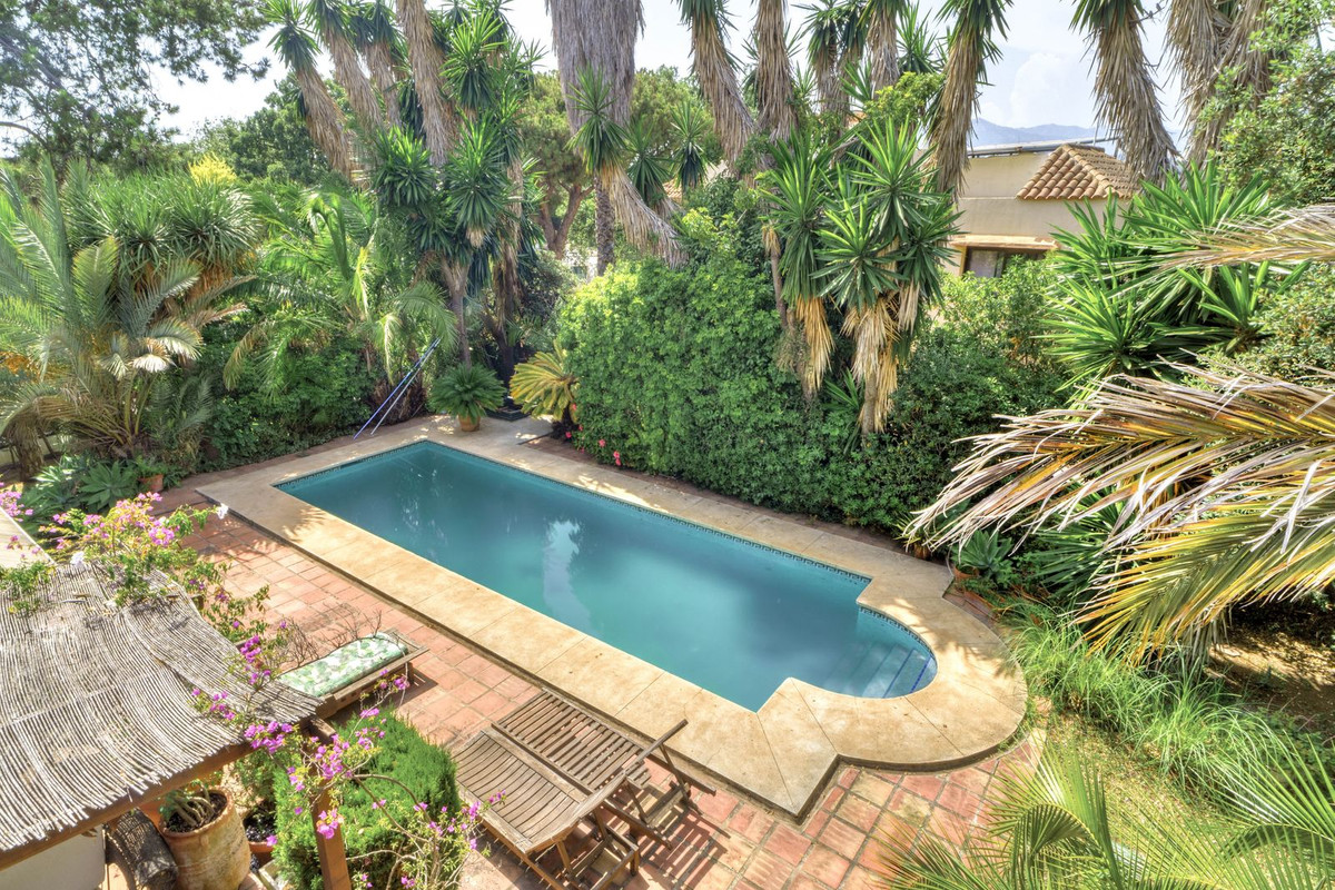 Situated on a flat plot in the quiet and secure residential area of El Rosario, Marbella, this 4-bedroom, 3-bathroom villa offers unparalleled comfort. Everything you need is within reach. Enjoy the convenience of underfloor heating throughout the house and relax by your private pool. The beautiful beach is just 1 km away, Marbella city center a quick 5 km drive, and the glamorous Puerto Banús just 10 minutes away. The trip to the airport is easy, a 35-minute drive. Benefiting from 24-hour security, this property also boasts significant potential for personalization. Inquire now to explore the possibilities!