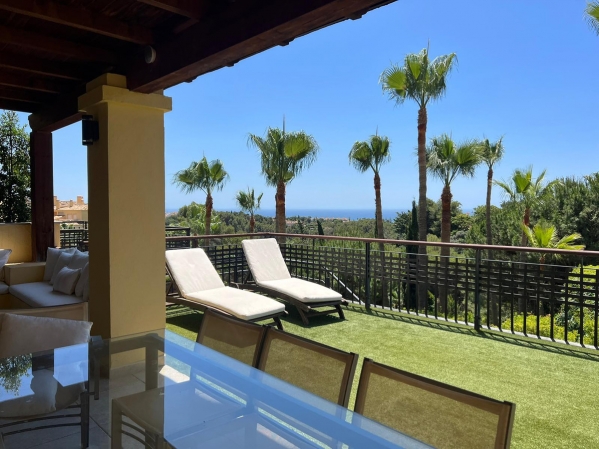 Ground Floor Apartment for sale in Condado de Sierra Blanca, Marbella with 3 bedrooms, 2 bathrooms and 1 toilet. Regarding property dimensions, it has 250 m² built, 350 m² plot, 250 m² interior and 100 m² terrace. Has the following facilities amenities near, air conditioning, fireplace, guest toilet, private terrace, sea view, covered terrace, electric blinds, fitted wardrobes, gated community, panoramic view, close to sea / beach, close to golf, balcony, handicap accessible, excellent condition, close to shops and close to schools.