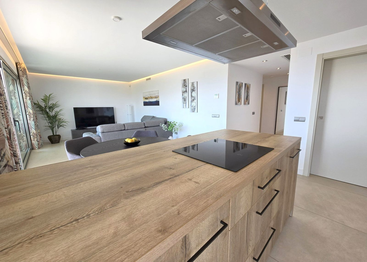 Enjoy the perfect blend of comfort, style, and location with this exceptionally bright, middle-floor corner apartment featuring 3 spacious bedrooms and 2 modern bathrooms. One of its standout features is the expansive terrace, offering breathtaking panoramic views of both the coastline and surrounding mountains. Impeccably presented, this apartment is set in the heart of La Cala Golf, Spain’s premier golf resort — a true paradise for golf lovers. The open-plan living and dining area is bathed in natural light, thanks to floor-to-ceiling windows. A modern, fully fitted kitchen (with separate laudry) integrates seamlessly with the living space and opens directly onto the terrace — perfect for embracing the outdoor lifestyle or entertaining guests.