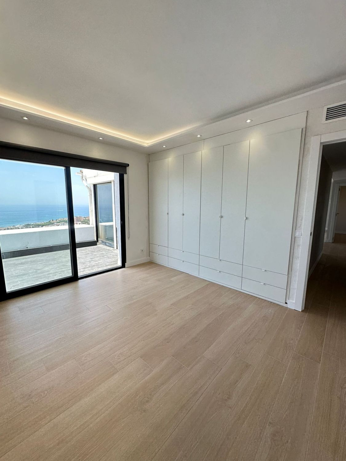 We offer this wonderful penthouse for sale in the coastal town of Mijas, province of Málaga. Located in a gated community with a communal pool and well-maintained landscaped areas, this apartment will make your stay a healthy experience, filling you with vitality and good humor. 17 km from the center of Málaga city, it will provide you with access to all the services and facilities you may need (shops, supermarkets, sports, educational, and health centers, public transportation, hospitality and catering services, government offices, and leisure facilities, such as the Miraflores Golf Course (1.7 km) or Torre Nueva Beach (2 km), among others. This wonderful home is located on a single floor and is located in the penthouse of a residential building. This first-floor apartment, with no elevator, occupies an exclusive wing of the floor, ensuring privacy as it is not shared with neighbors. It has a constructed area of 115 m², distributed among: 3 bedrooms with built-in wardrobes, a separate kitchen, two full bathrooms (one en suite), and a spacious living-dining room with access to a 22 m² terrace. This spacious area, which seems to divide the terrace in two, is located inside the living room. It features large windows and large glass doors, from which you can enjoy the beautiful 360º panoramic sea views in any season, regardless of the weather (it is sunny for most of the day). You can also spend unforgettable moments with your loved ones enjoying the beneficial Mediterranean climate on the terrace on summer nights.