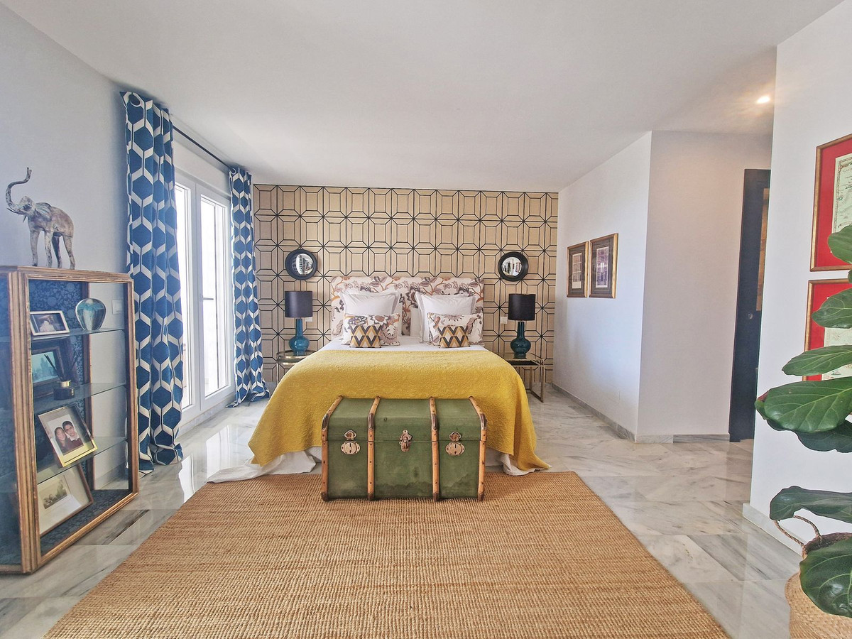 This beautifully renovated property in Calahonda is truly one-of-a-kind, offering panoramic views of the sea, golf course, and mountains. Thoughtfully restored with exquisite taste and meticulous attention to detail, this home blends elegance, comfort, and functionality in a way that is rarely found on the market.