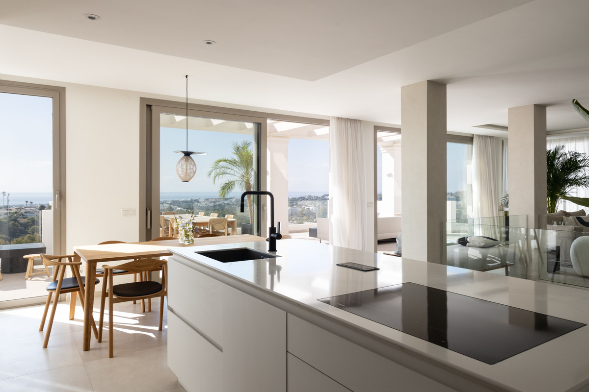 Located in the exclusive gated community of 9 Lions Residences above Puerto Banus, this corner duplex penthouse offers complete privacy, breathtaking sea views, and the feel of a private villa – without the maintenance.Enjoy sun-filled living across two levels, with three en-suite bedrooms, floor-to-ceiling windows, and expansive south-facing terraces. The master suite occupies the upper floor, with its own solarium and Drop Jacuzzi.This home was purchased new from the developer and has been owned by only one family, ensuring it’s been carefully maintained.High-end finishes include Gaggenau appliances and Villeroy & Boch bathrooms. Direct elevator access from the garage brings you to your private floor with secured entry.The community offers 24/7 security, concierge service, heated pools, gym, saunas, and lush gardens. Out of 53 residences, only nine are duplex penthouses – making this a truly rare find.Interior 247 m² | Terraces 128 m² | Private Garage (3 cars) 83 m² | Storage 10.6 m²