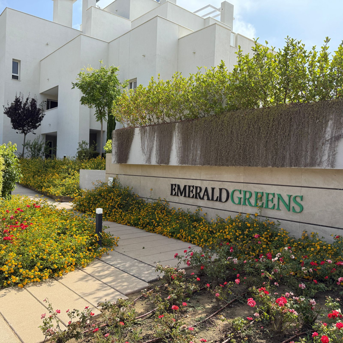 Emerald Greens is an exclusive residential project consisting of 80 apartments spread over 10 three-story buildings, grouped in three phases around three communal pools. Each building contains only 8 spacious apartments, contributing to a sense of privacy and exclusivity. The homes are designed with an "open plan" and "total living" concept, with spacious living rooms flowing seamlessly into large open terraces, fully integrated into the surrounding cork oak forests. The homes feature high-quality finishes, including large-format floor tiles, large windows, fully equipped kitchens, lighting packages in all rooms and air conditioning.