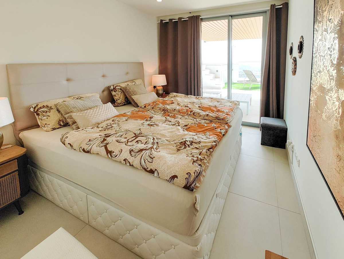 This first-class flat has two bedrooms with en-suite bathrooms, an open-plan kitchen/living room and an additional guest WC. It offers an exceptional living experience with a combination of luxury, comfort, and relaxation. The modern design and high-quality furnishings combine with the natural surroundings and first-class facilities, the right thing for a sophisticated lifestyle.