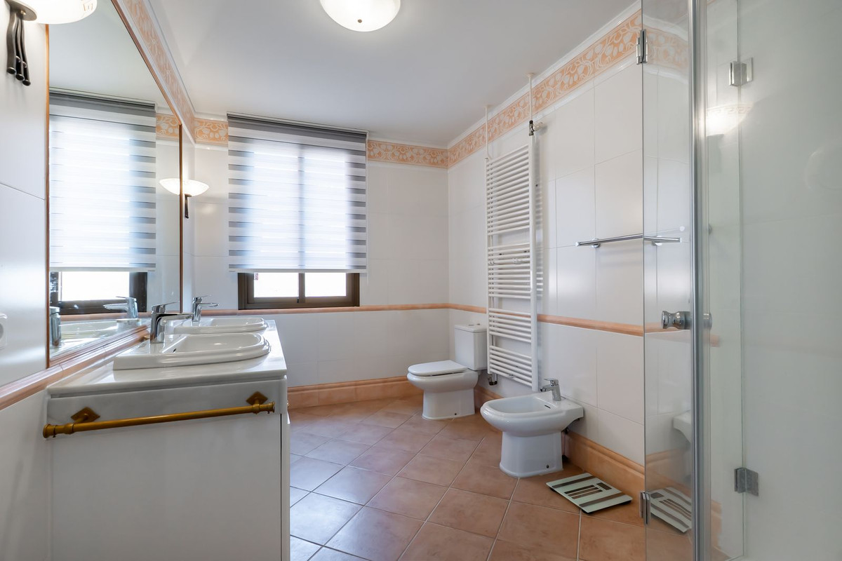 This spacious 3-bedroom, 2-bathroom apartment offers 144 m² of built space and 52 m² of terraces. The bright open-plan living and dining area features a charming fireplace and sliding glass doors that lead out to the main terrace — ideal for enjoying the surrounding nature and views. The newly renovated kitchen is fully equipped with modern appliances and finishes.