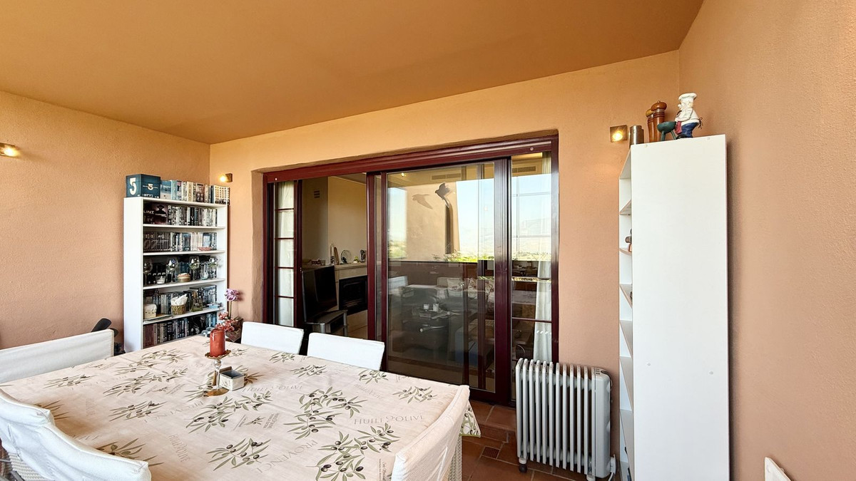 The property features a spacious and bright living-dining area with direct access to a large private terrace – perfect for relaxing or entertaining while enjoying stunning mountain and sea views. The fully equipped kitchen offers modern appliances and plenty of storage space.