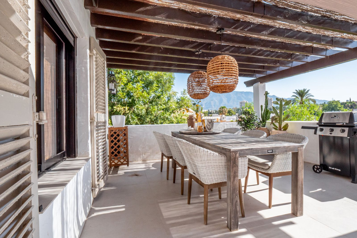 Beautiful, stylishly renovated 2-bedroom apartment in the charming, popular, typically Spanish urbanization of La Maestranza, in the heart of Nueva Andalucia.
