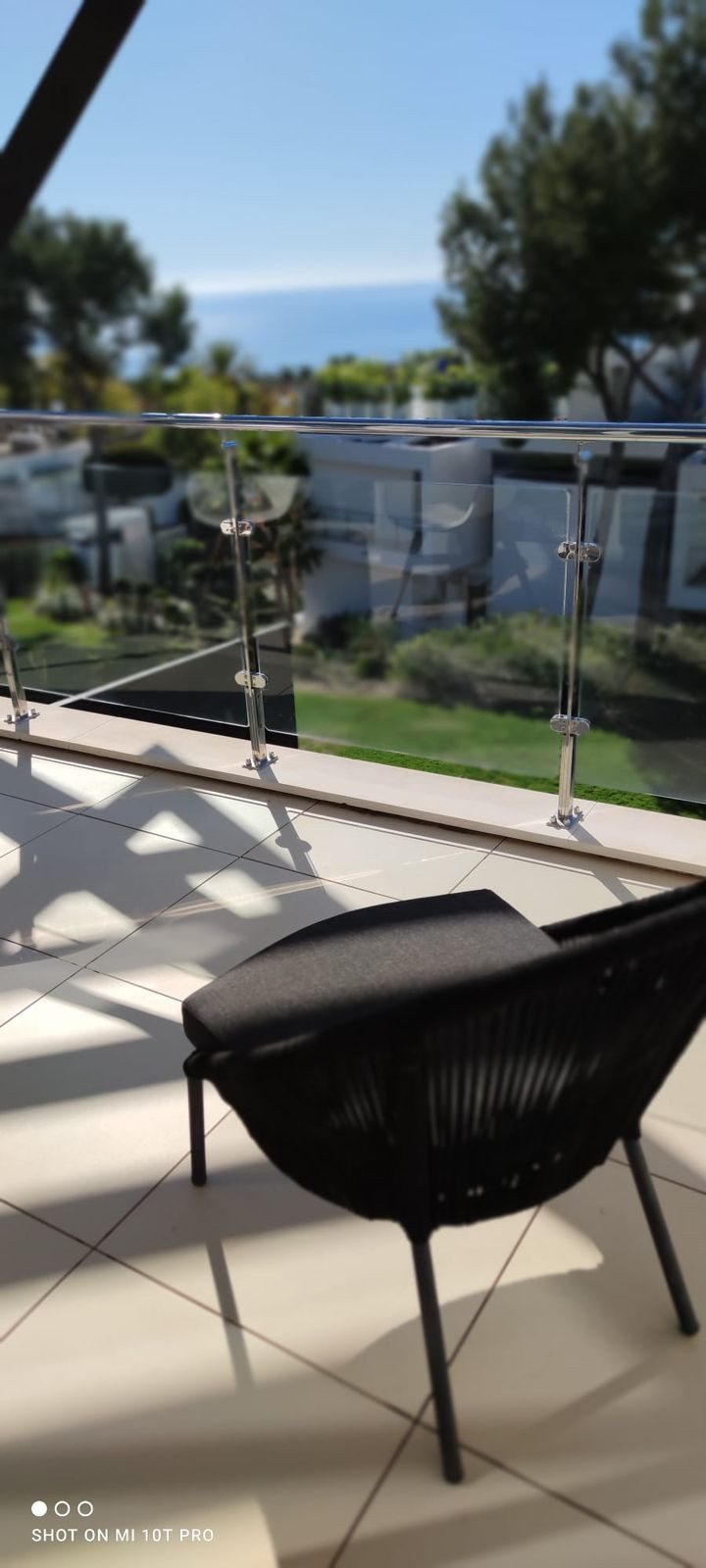3 bedrooms and 3 en suite bathrooms plus 1 guest toilet, It has sea views from the ground floor, first floor and the solarium. private garage for two cars and storage room. underfloor