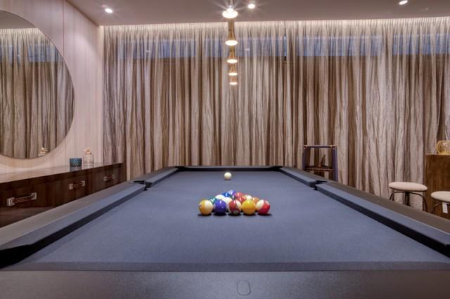 Le niveau inférieur est tout aussi impressionnant, avec une quatrième chambre et une salle de bain, une buanderie et une salle de cinéma sur mesure avec son propre bar : un espace unique et luxueux pour recevoir ou se détendre avec style.