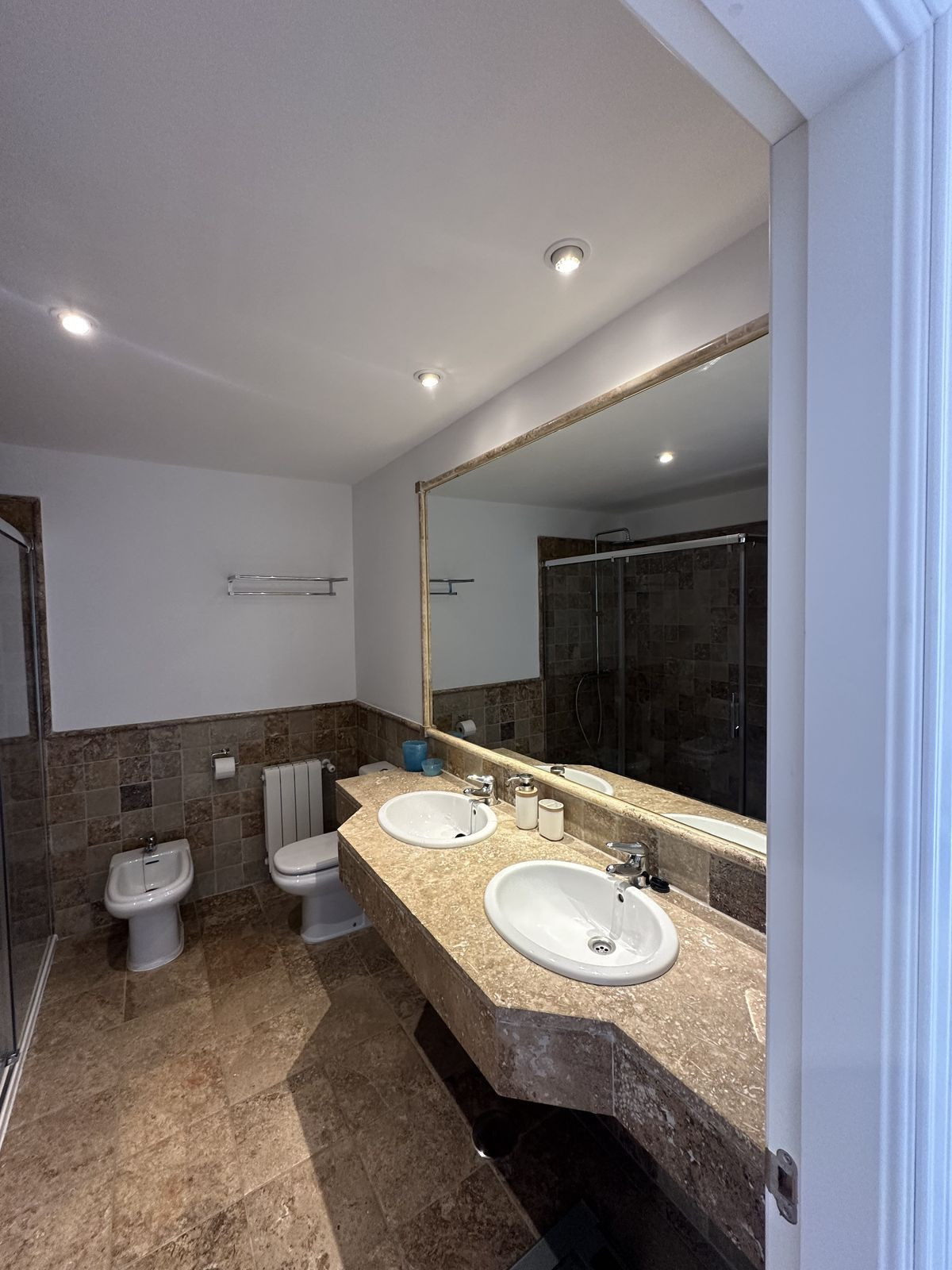 Upon entering this luxurious penthouse, you are immediately welcomed by the spacious hallway with elegant built-in wardrobes. The large, fully equipped kitchen is finished with high-quality materials and includes a separate utility room – perfect for additional storage or laundry. From the kitchen, you walk into the bright and open living room, where large sliding doors on two sides create a seamless connection to the expansive wrap-around terrace.
