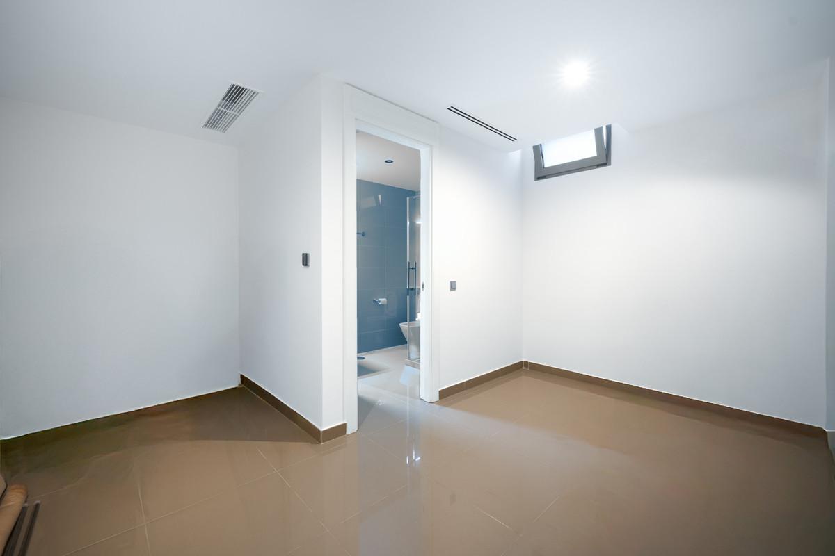 Outdoors, Villa Veliko delivers the essence of Marbella living. The garden includes a sparkling pool, sun terraces, and a bar area ideal for gatherings. The rooftop solarium offers 360-degree views of the sea and La Concha mountain. This villa is a rare opportunity to own a luxury beachside property that combines Andalusian charm with modern design.