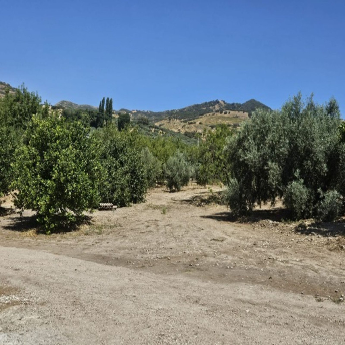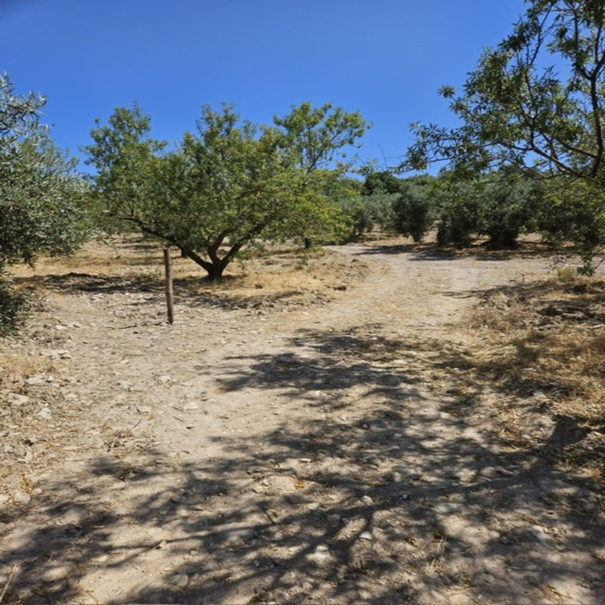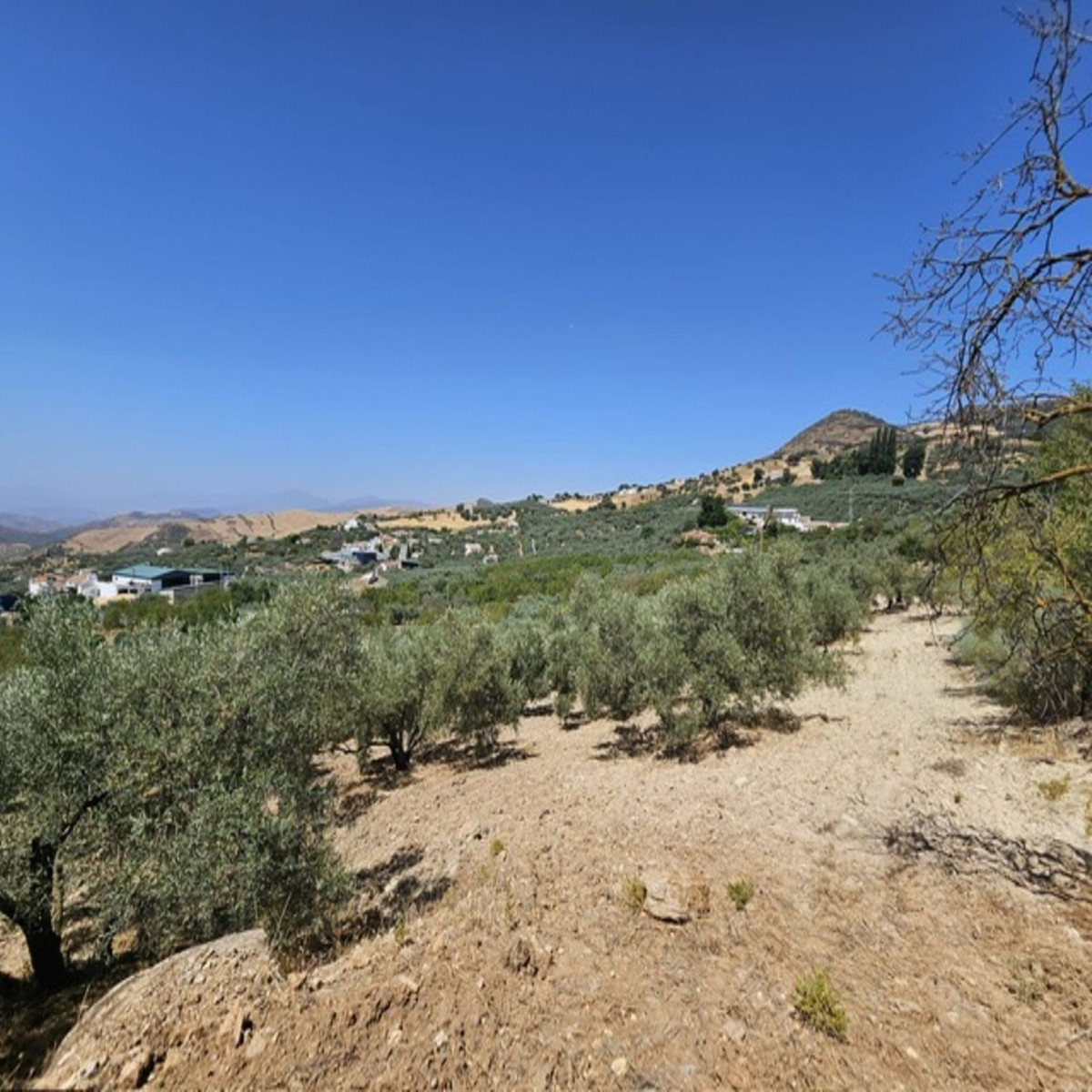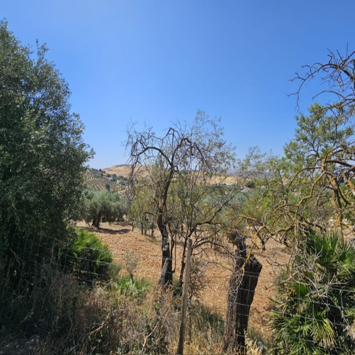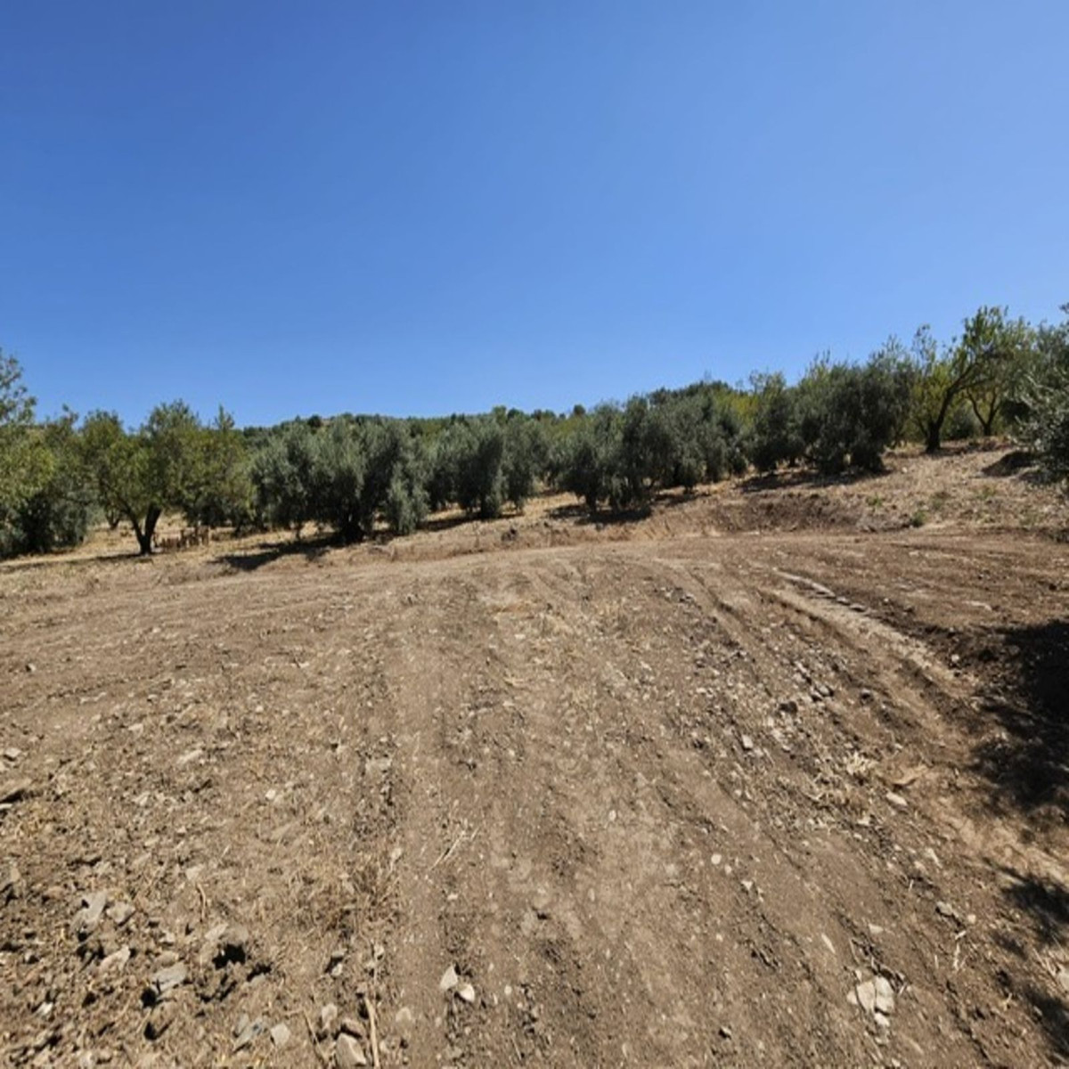 Then walk 20 meters and you will find a fenced plot. The land is almost entirely flat and has a space prepared for caravan parking. There is a shower and a toilet on the same plot for new owners who want to take advantage of an extra income. The plot measures no less than 18,000 m2 and has 80 Hojiblanca olive trees actively producing extra virgin olive oil.