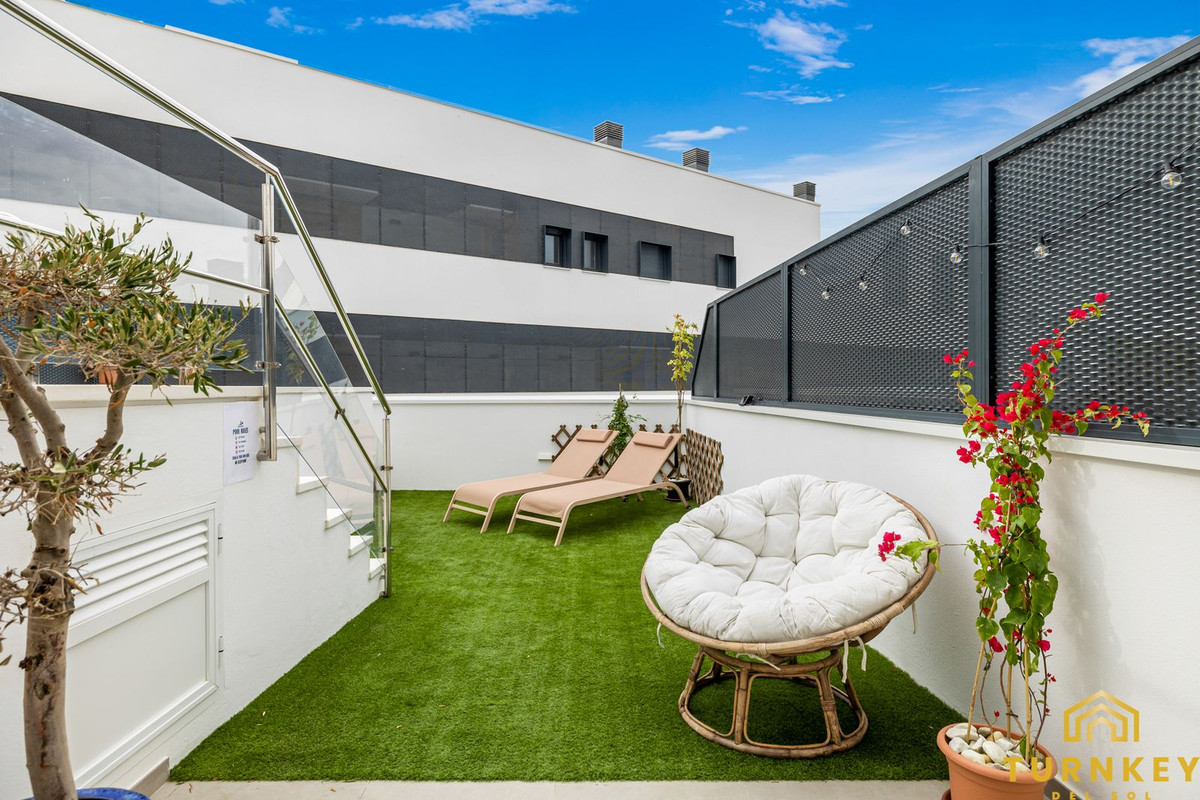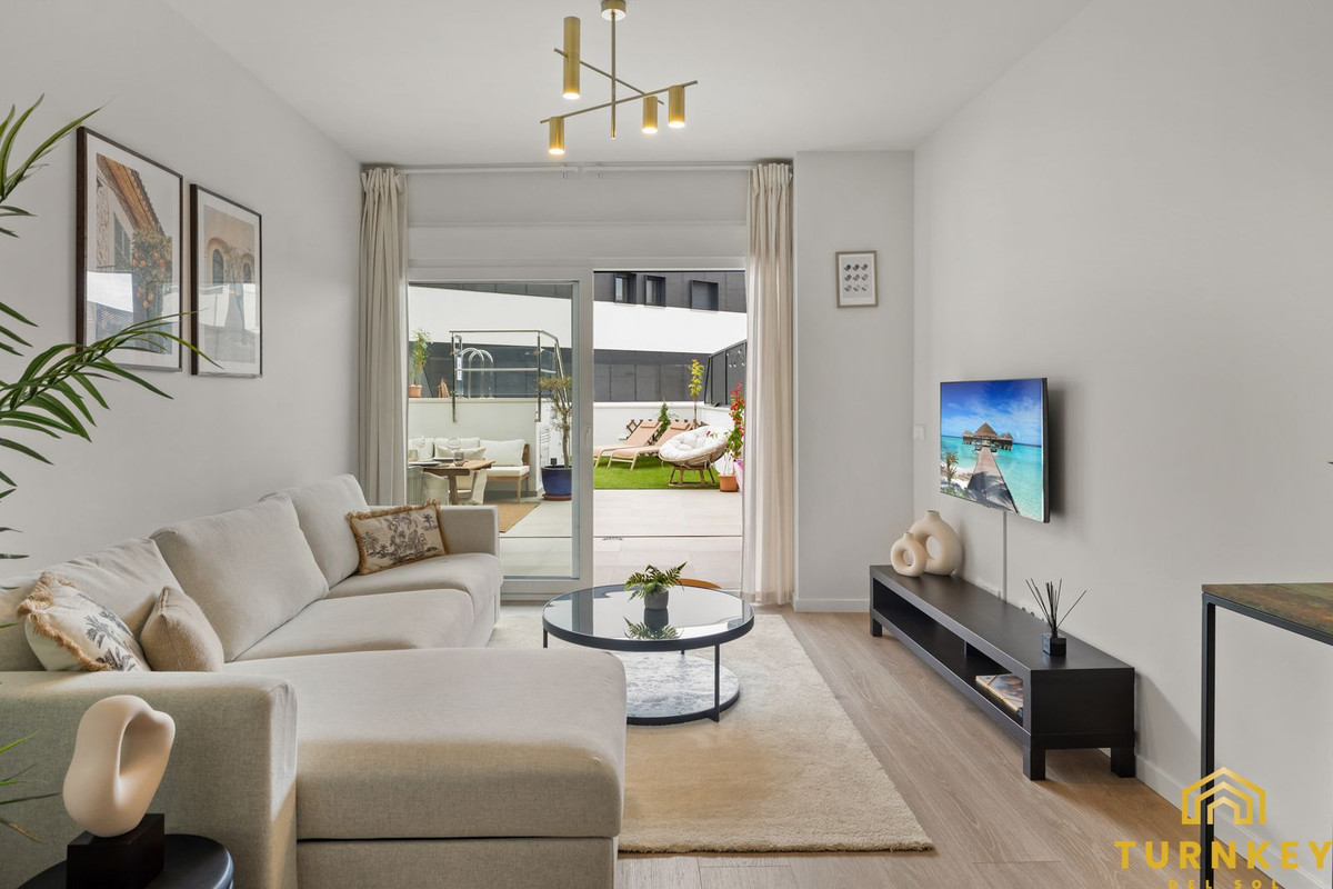 Located just 700 meters from the vibrant center and the beautiful Playa de la Rada beach in Estepona, this apartment provides ultimate privacy and tranquility. Enjoy a spacious 70m² terrace with a private pool, a large garden with a dining table, lounge area, and comfortable sunbeds – perfect for soaking up the sun and entertaining guests.