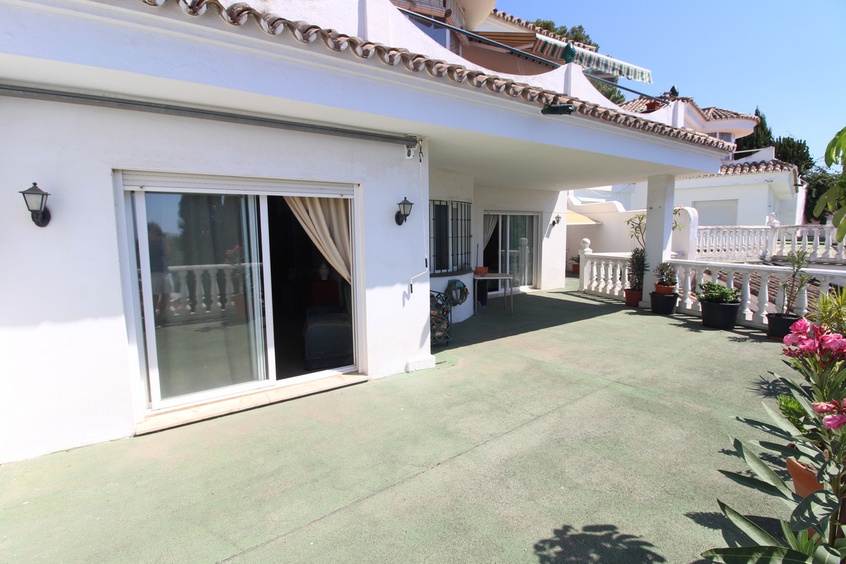 La Campana area in Nueva Andalucia is a thriving community with a vast array of amenities. Offered for sale is this house situated walking distance from all local services. The property enjoys far reaching views towards the sea and the spacious accommodation distributed on two floors comprises 4 bedrooms, two bathrooms and guest toilet, an open plan kitchen/dining and lounge area a further sitting room with an open fire in the lower floor and 3 different terrace areas on both floors. From the terraces you can have views of the mountains and the sea. Other features include, laundry room, off road parking, pantry and air conditioning. MUST VIEW!!