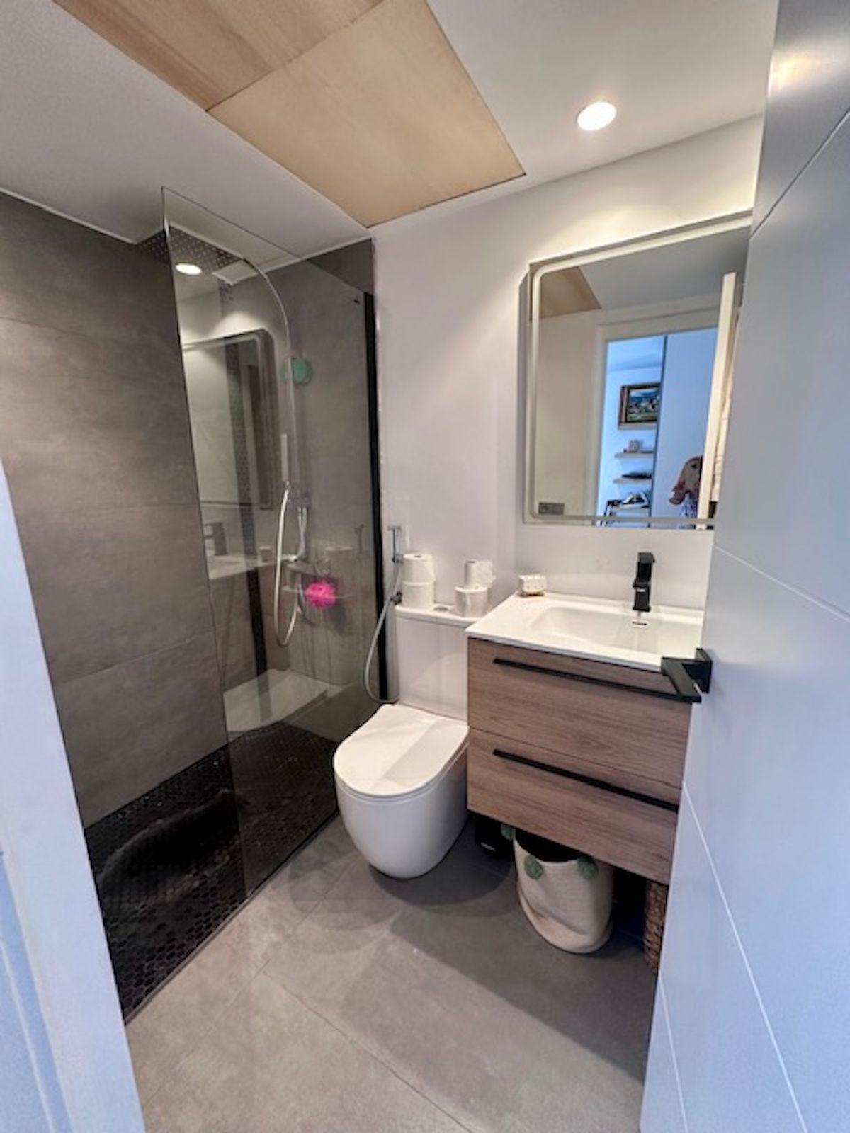 To the right of the entrance hall, we find the bright and spacious guest bedroom with an en-suite bathroom, also renovated.