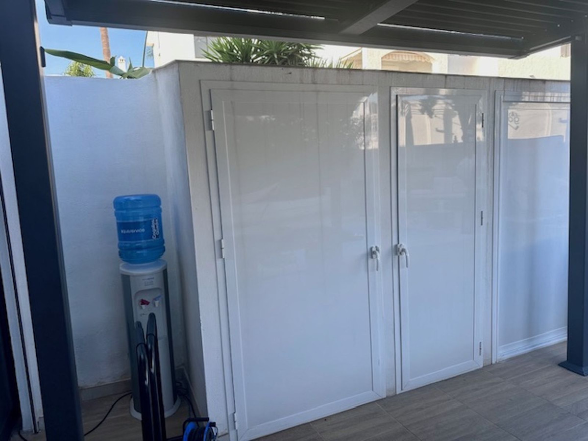 On the porch, we have a large enclosed storage space for all garden utensils.