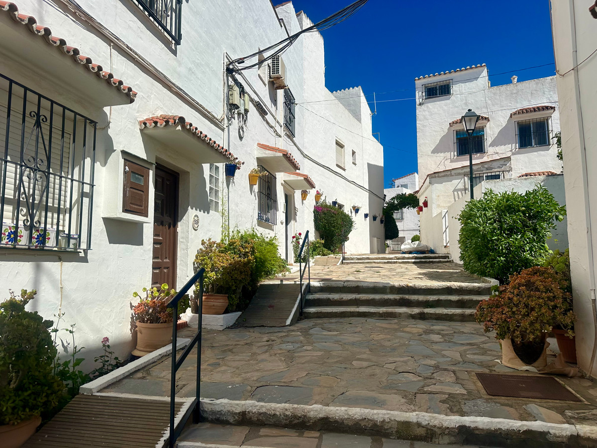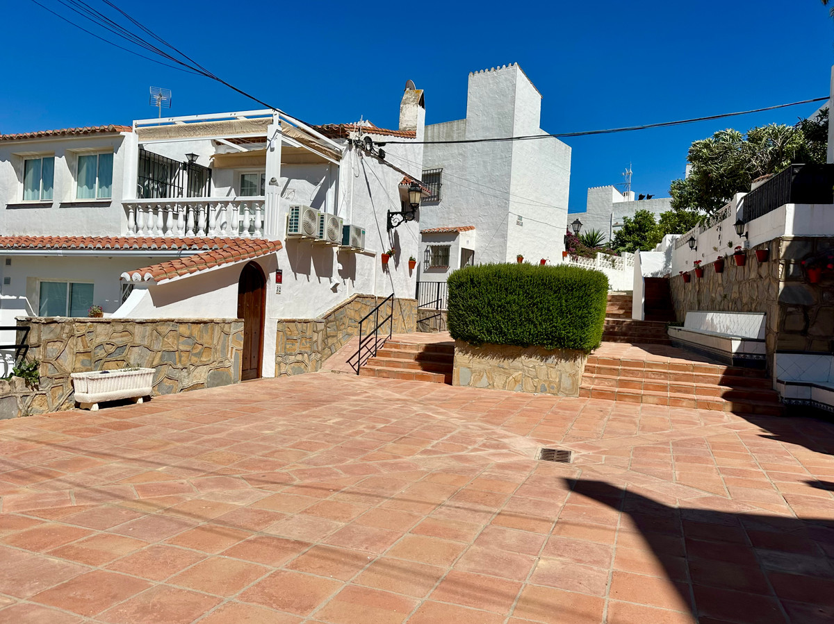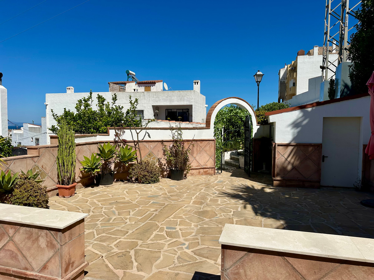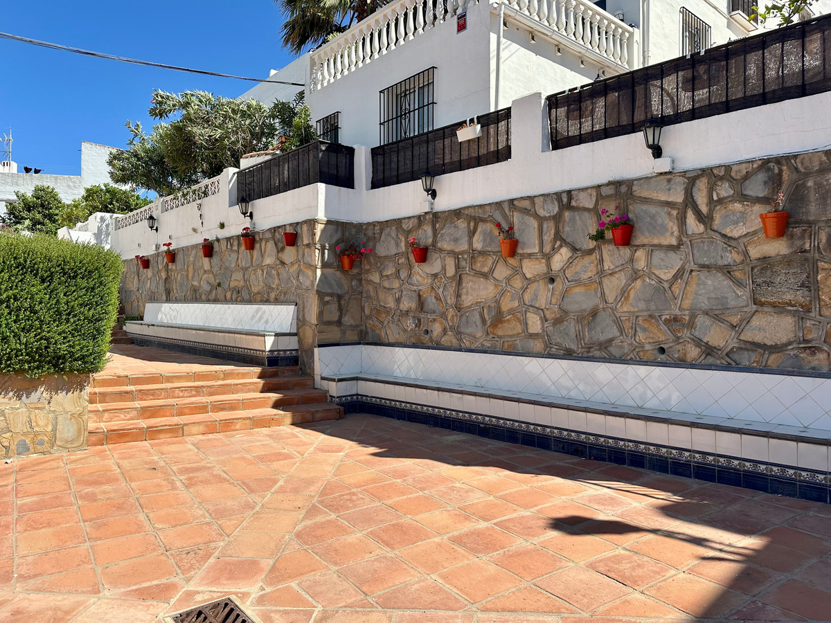 Wonderful Detached Villa in the Heart of ManilvaThis charming three-storey detached home invites you to enjoy Andalusian charm in a peaceful residential complex with a swimming pool, just steps from the center of Manilva.Upon arrival, you\'re welcomed by a sunny south-facing patio of approximately 60 m², featuring elegant traditional-style columns, a covered terrace, and a perfectly integrated storage room.Inside, a hallway leads to a bathroom with shower, and further on, it opens up to a warm living room with a fireplace and an open-plan kitchen. The separate dining area connects to a terrace with a barbecue — ideal for sharing outdoor moments.A lower level offers another terrace of about 40 m² with an independent room, outdoor shower, and laundry area.From the living room, a beautiful spiral staircase leads to the first floor, where you’ll find two bedrooms with built-in wardrobes and a modern bathroom with shower.Finally, on the top floor, a lovely rooftop terrace of around 30 m² offers open views of the mountains, countryside, and sea, a perfect spot to breathe and disconnect.You have at your disposal the abbreviated information document. Costs: Taxes (ITP or VAT + AJD) + Notary and registry fees.NGS