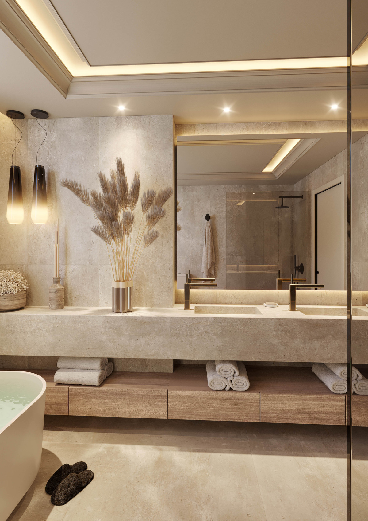 This development offers resort-style amenities, discreetly integrated into the landscape. A tranquil spa hidden behind flowering stone walls, a serene coworking space with garden views and filtered light, and a fitness suite where glass walls reveal trees instead of treadmills.