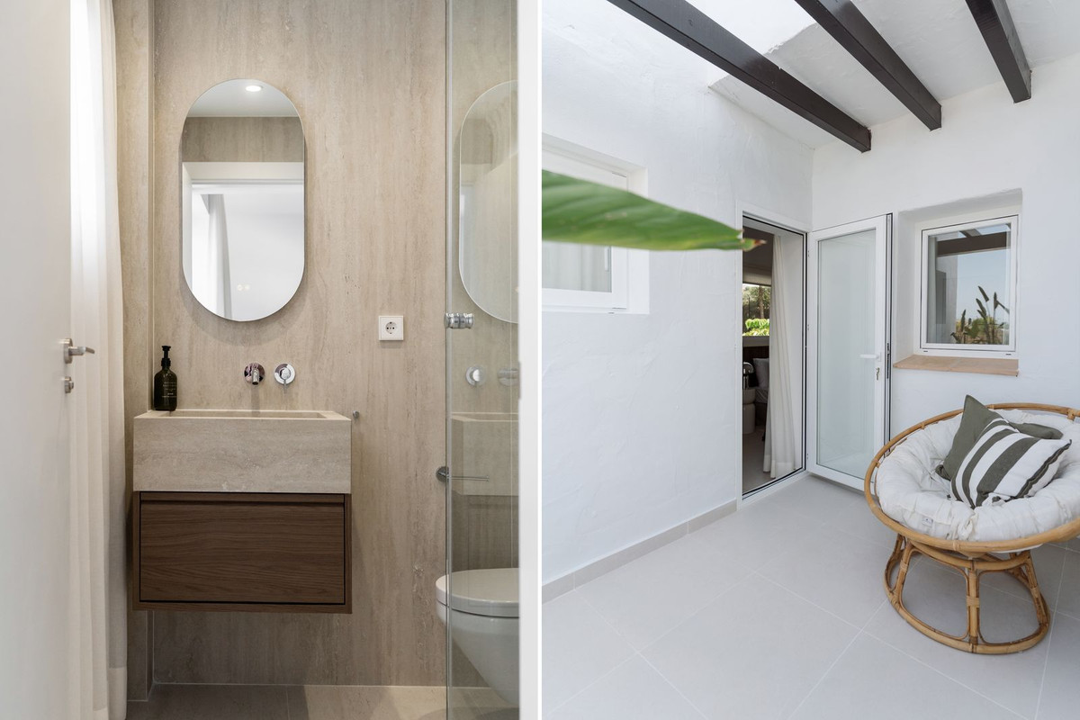 Upstairs, two more en-suite bedrooms each enjoy their own terrace. The master suite offers a walk-in closet and a spacious terrace complete with a private plunge pool, outdoor shower, and uninterrupted sea views, a true retreat.
