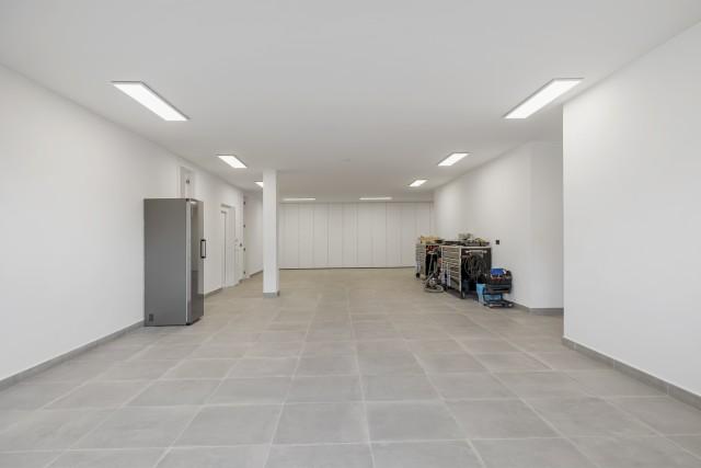 Vestiaire invités, débarras et garage intégré pour deux véhicules.