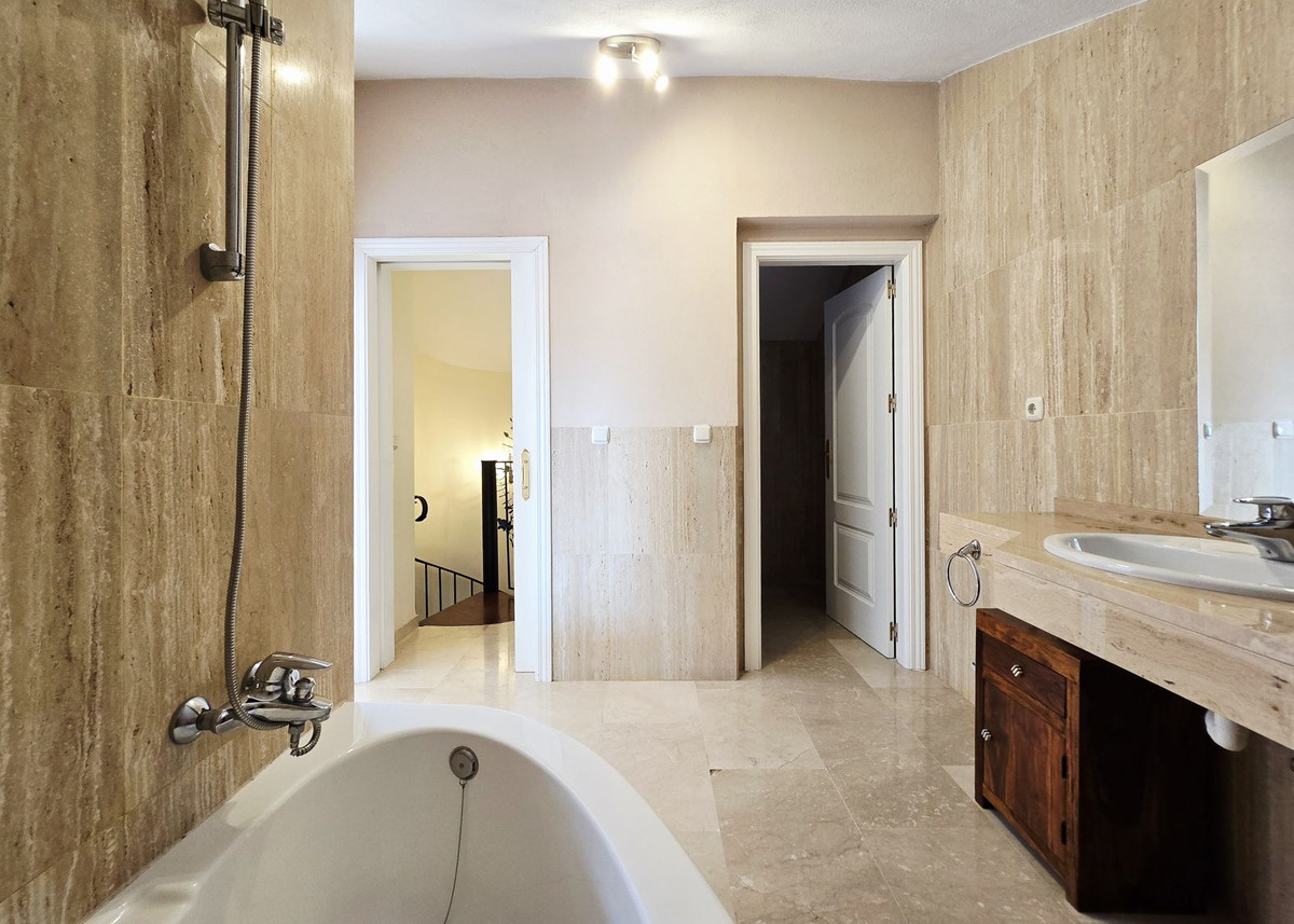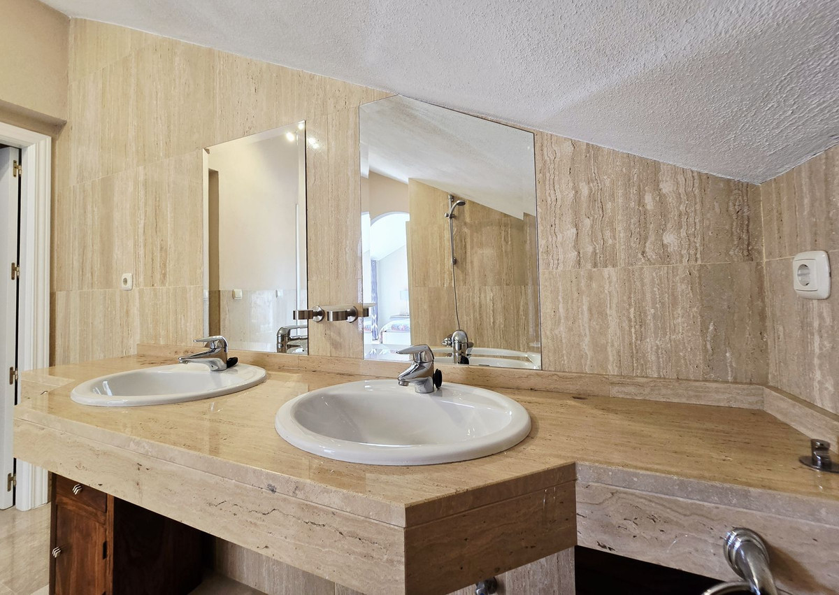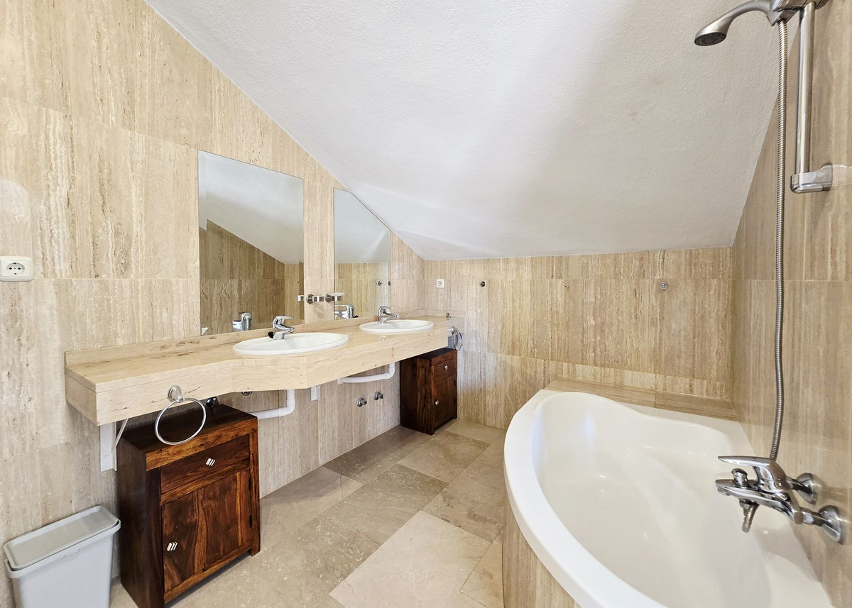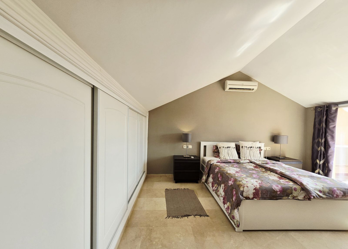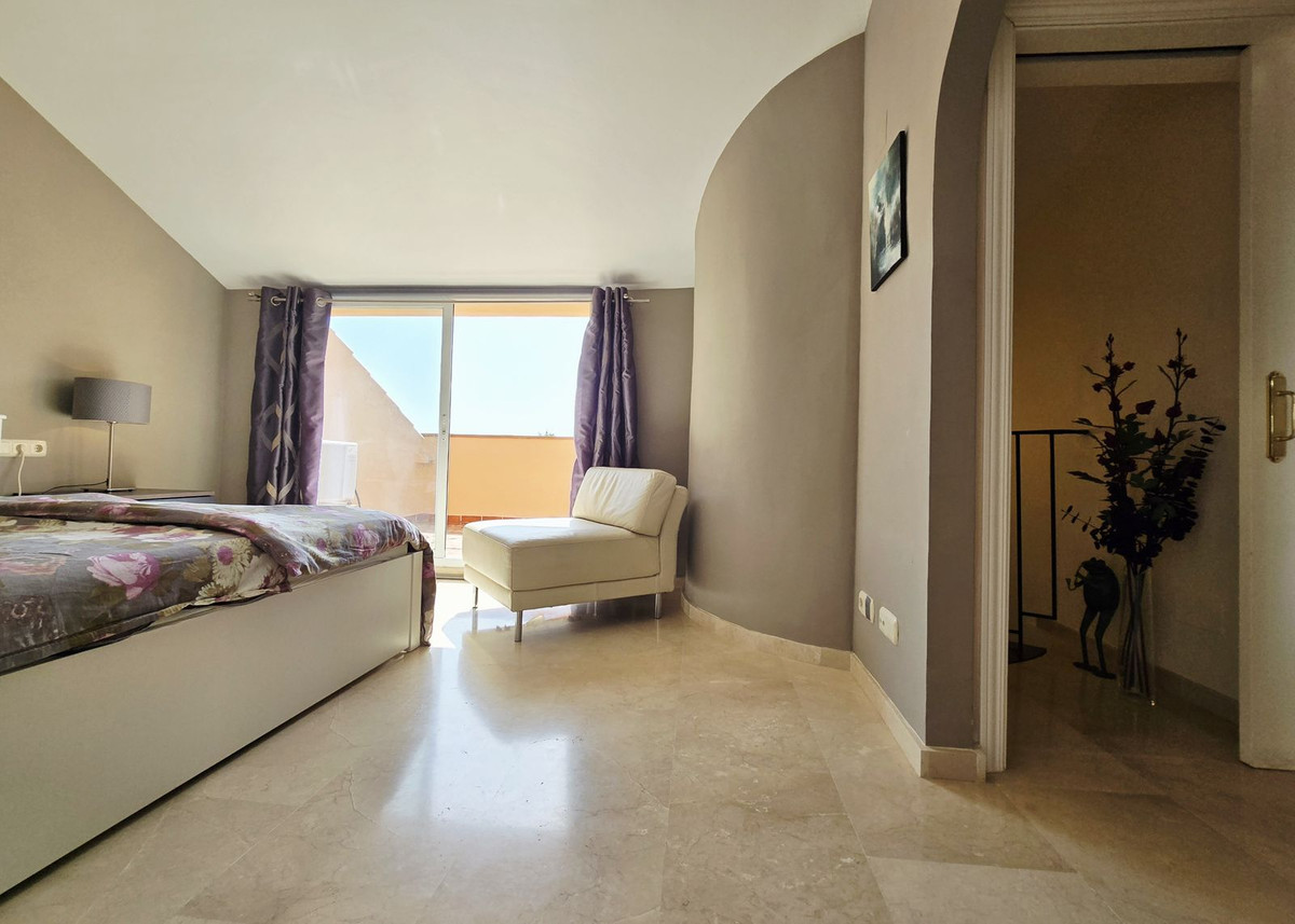 This bright two-storey penthouse is in good condition and comprises a large living and dining room with access to a spacious terrace. The kitchen is located at the rear, as is the second bedroom. A complete family bathroom is also on this level.