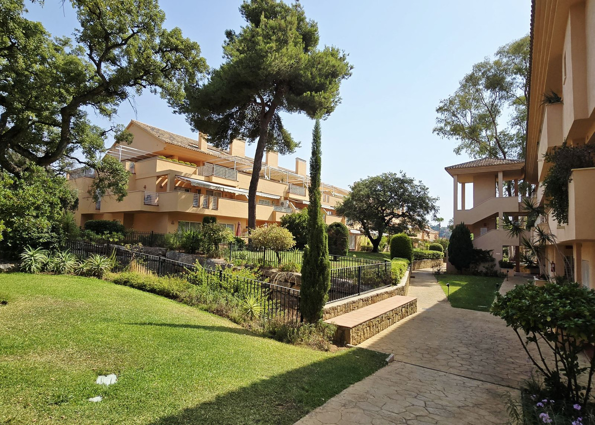 Few places in East Marbella boast such spectacular gardens, large communal pools, and extensive amenities like this resort-style development. Amid the buildings, planters, and walkways, you’ll find eucalyptus trees towering over 50 metres, more than 100 varieties of ornamental plants, colourful bougainvillaeas, and century-old cork oaks.