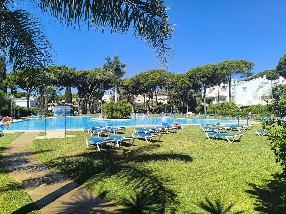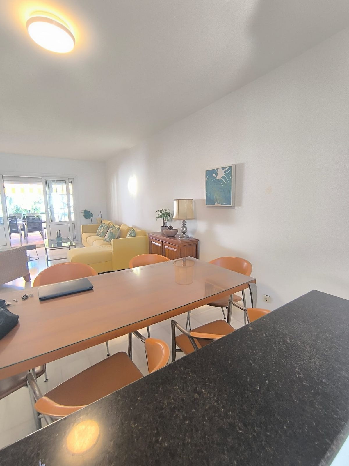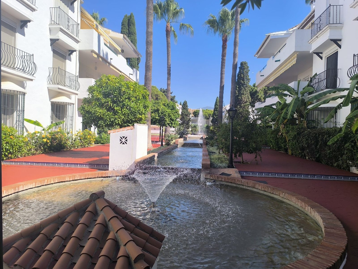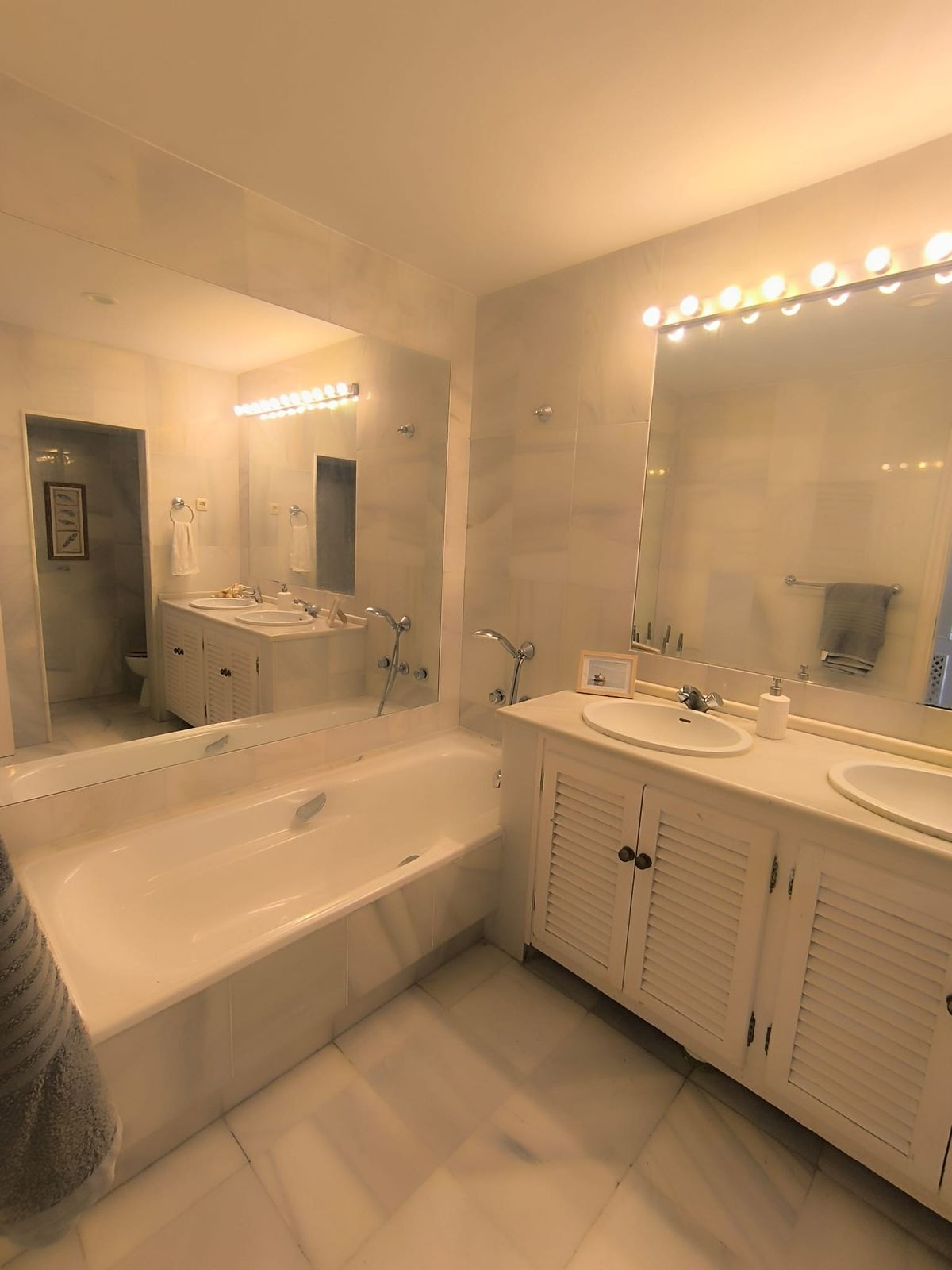 Spacious apartment in the El Presidente complex, Estepona, next to the beach and close to all amenities. The apartment features an entrance hall, a large living-dining room, a fully equipped kitchen, and 3 bedrooms with 2 bathrooms. Marble floors and built-in wardrobes. The development has 5 swimming pools, one of which is heated year-round, as well as paddle tennis and tennis courts. Several golf courses are nearby. There is a concierge at the entrance and 24-hour security.