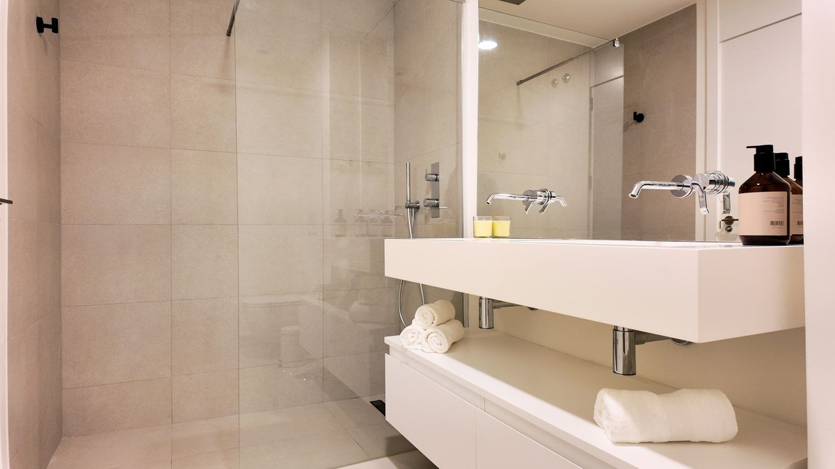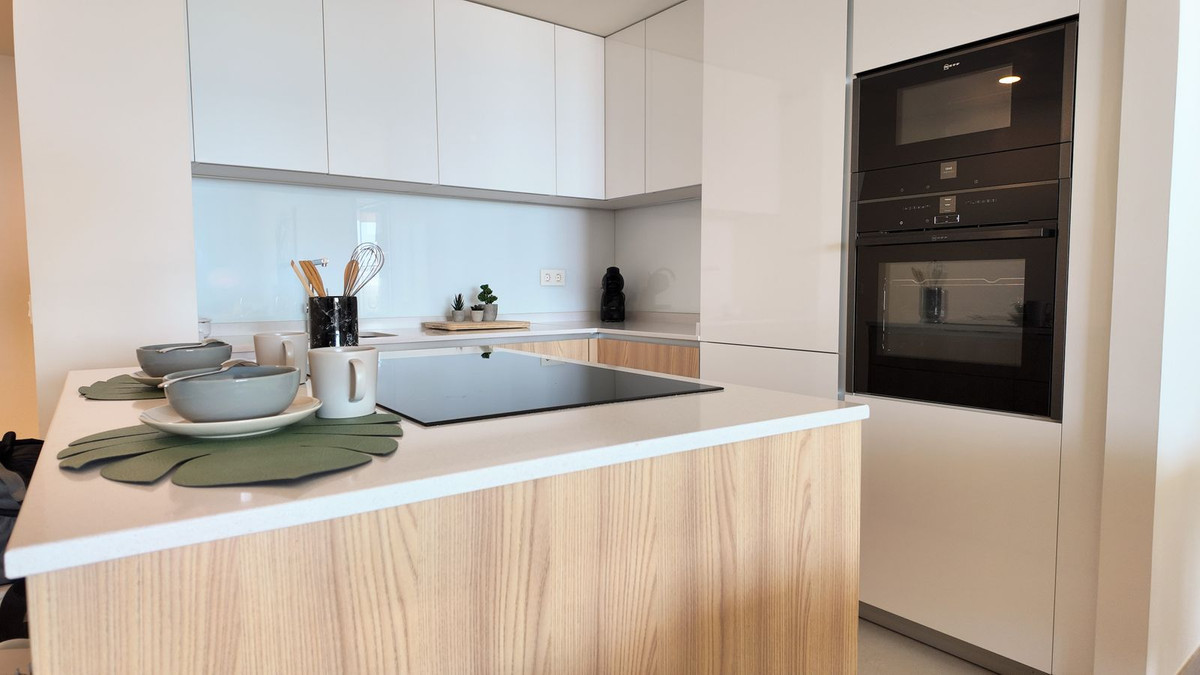This opulent two-bedroom, two-and-a-half-bathroom apartment spans 100m² and meets the highest standards, featuring premium kitchens and bathrooms designed by Gunni & Trentino and Neff. Modern conveniences, including climate control and pre-installed smart home automation, enhance your living experience.