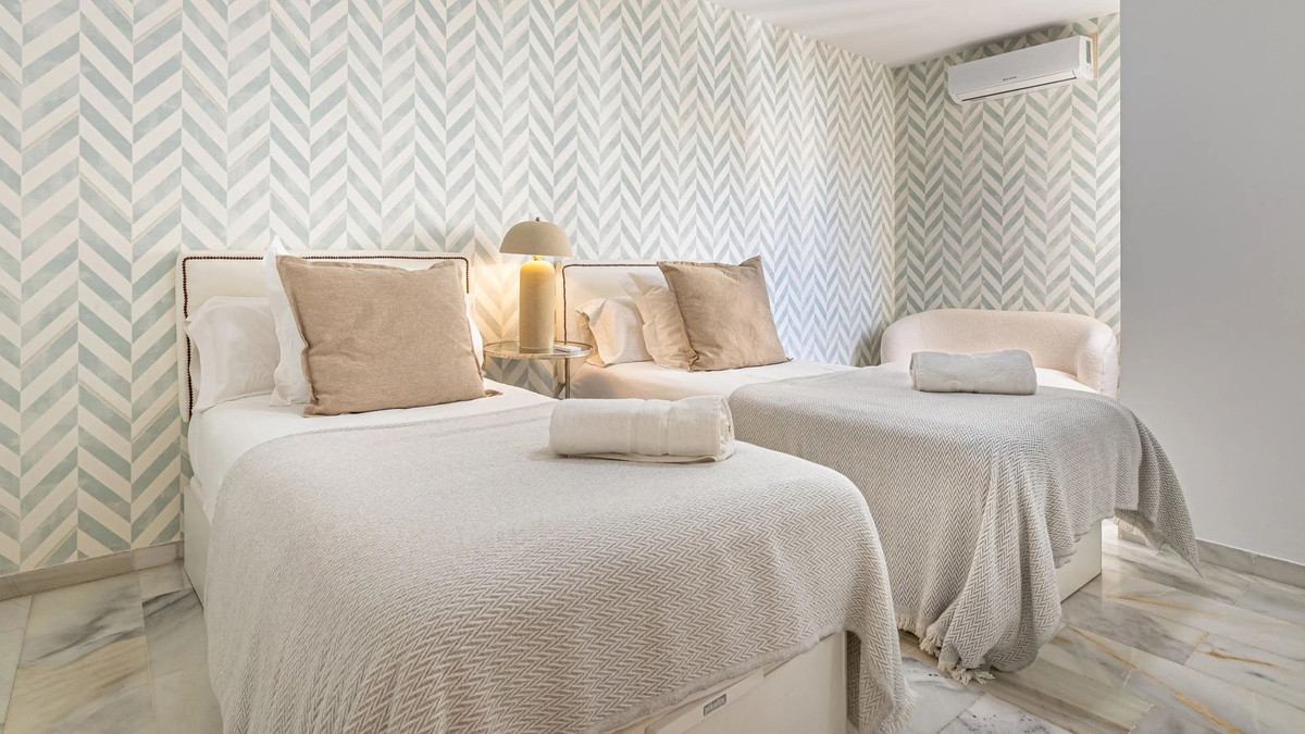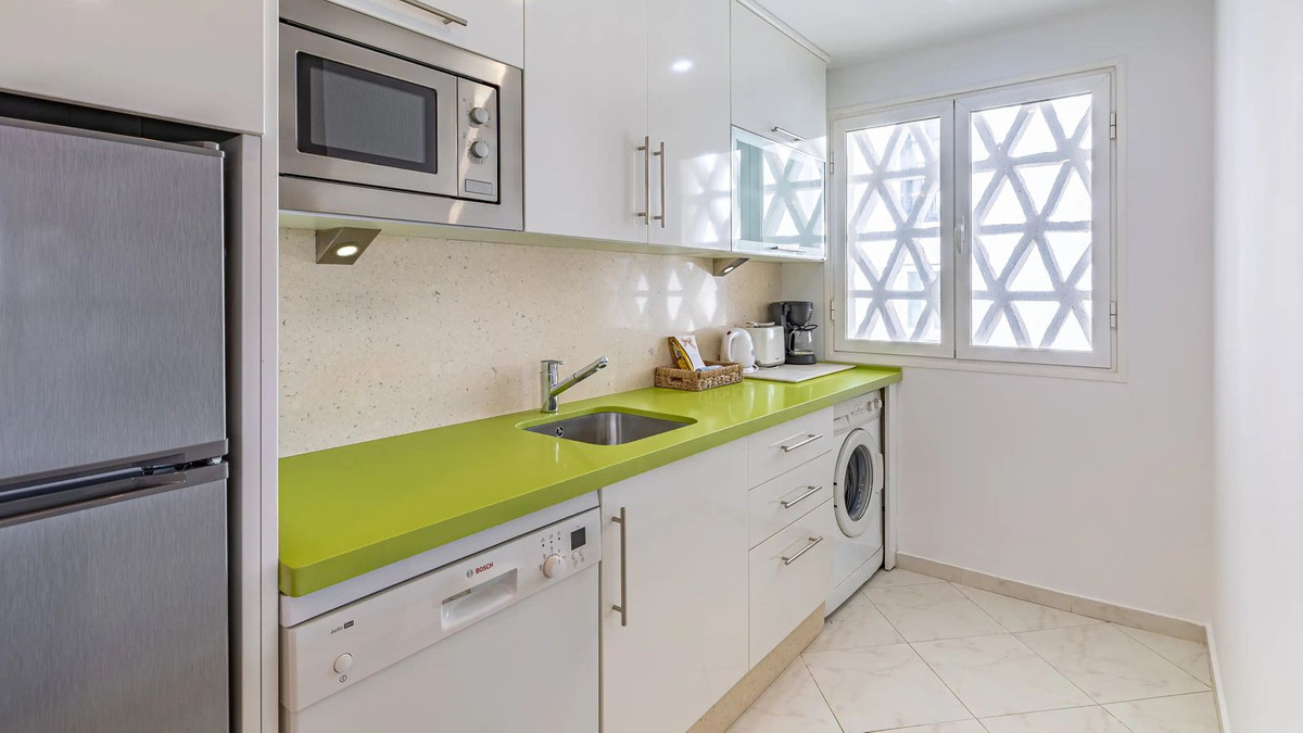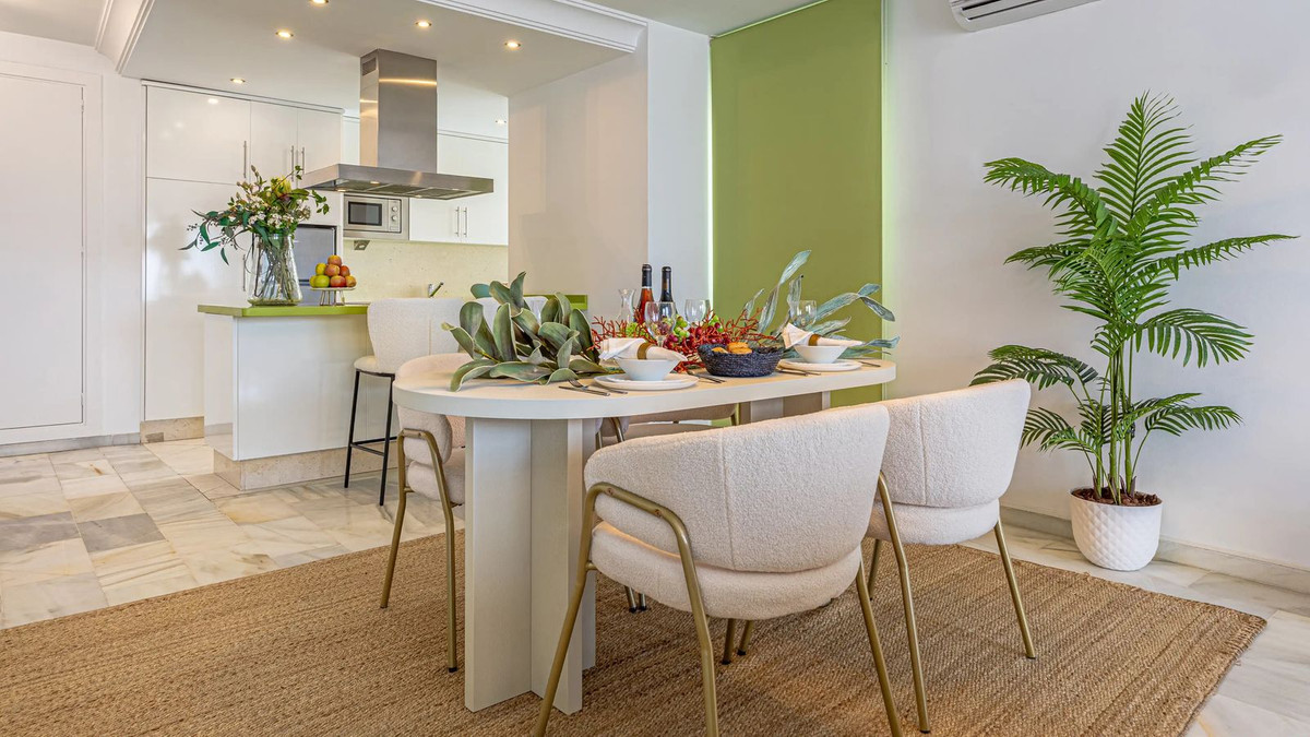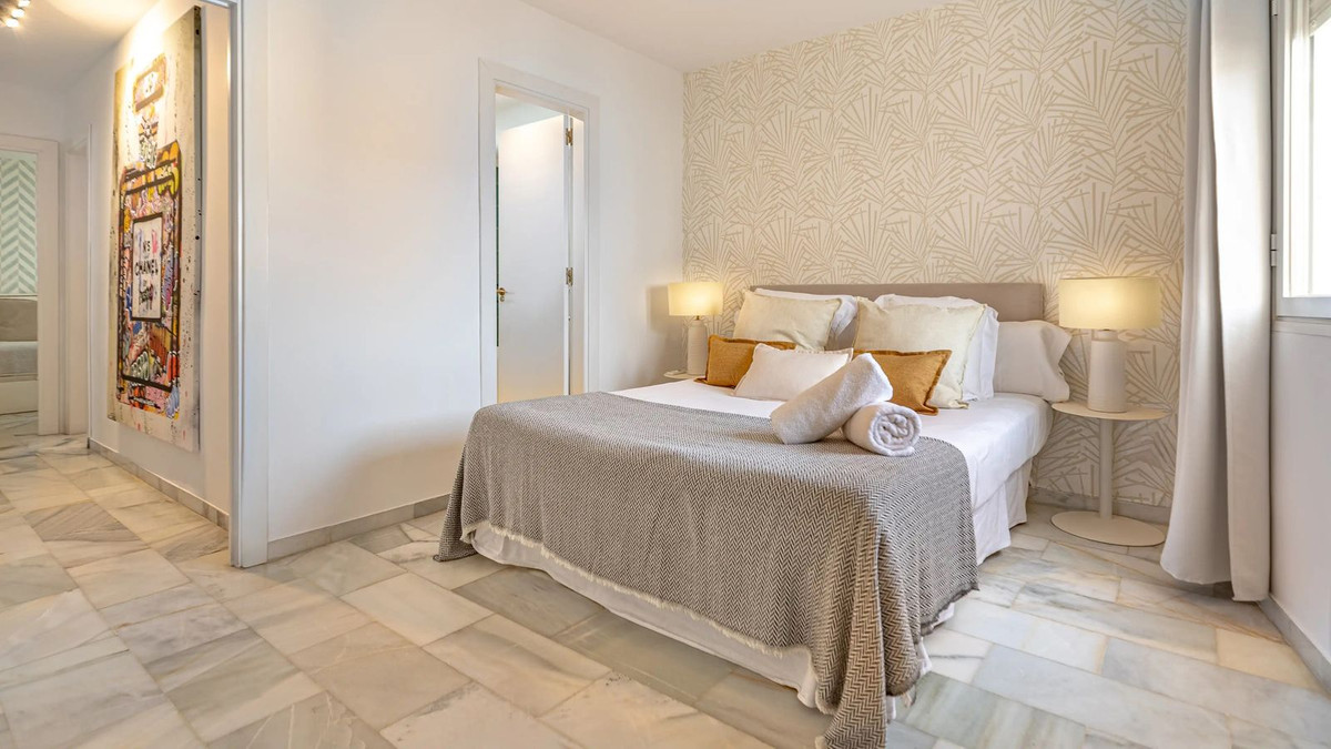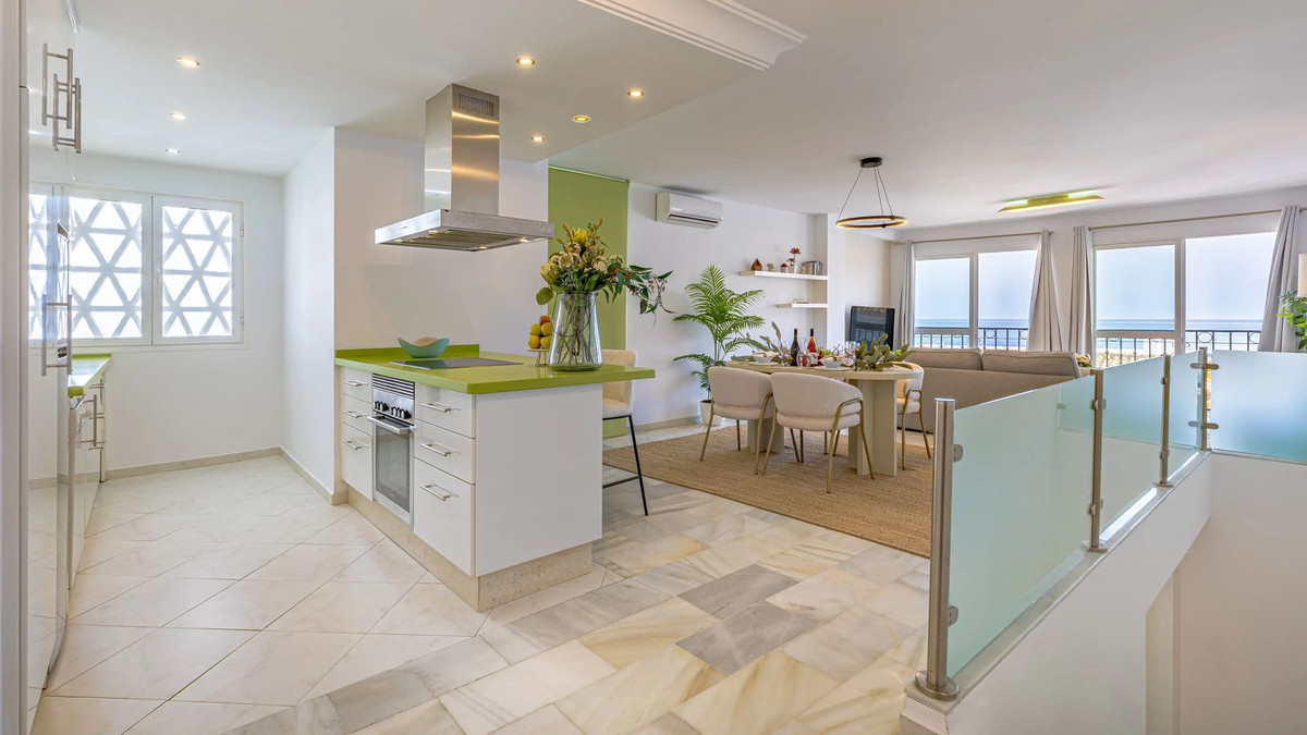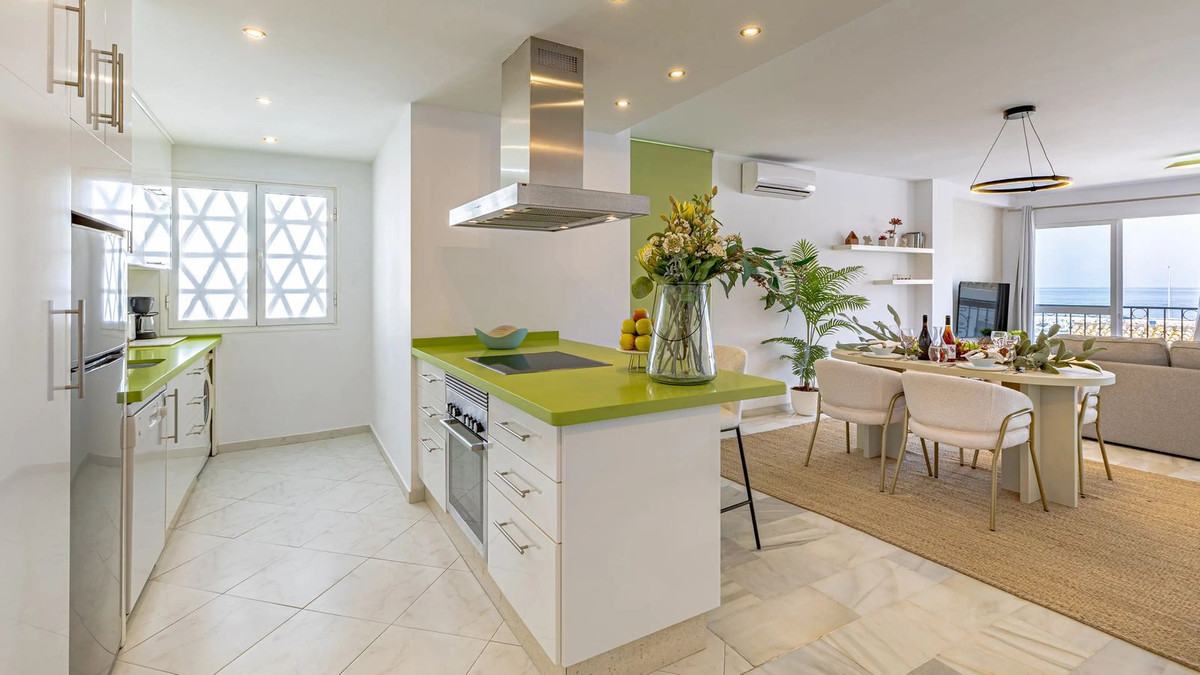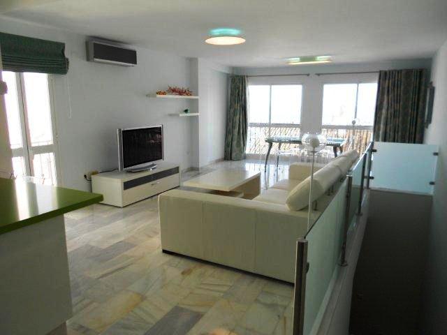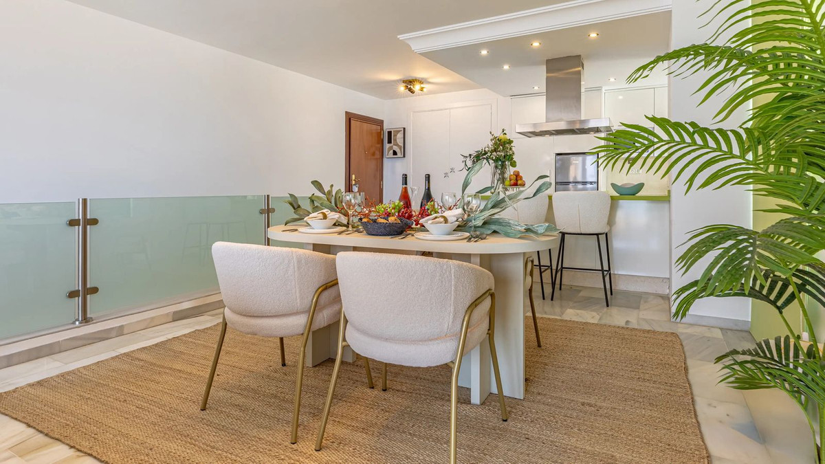 Modern duplex apartment in Puerto Banús with stunning sea views, just steps from the beach, restaurants, luxury boutiques, and all amenities. Featuring two bedrooms (one en-suite), two bathrooms—one with Jacuzzi—a fully fitted open-plan kitchen with breakfast bar, and a bright living-dining area. Finished in marble with new A/C units and satellite TV. The building offers concierge service, night security, and private underground parking.