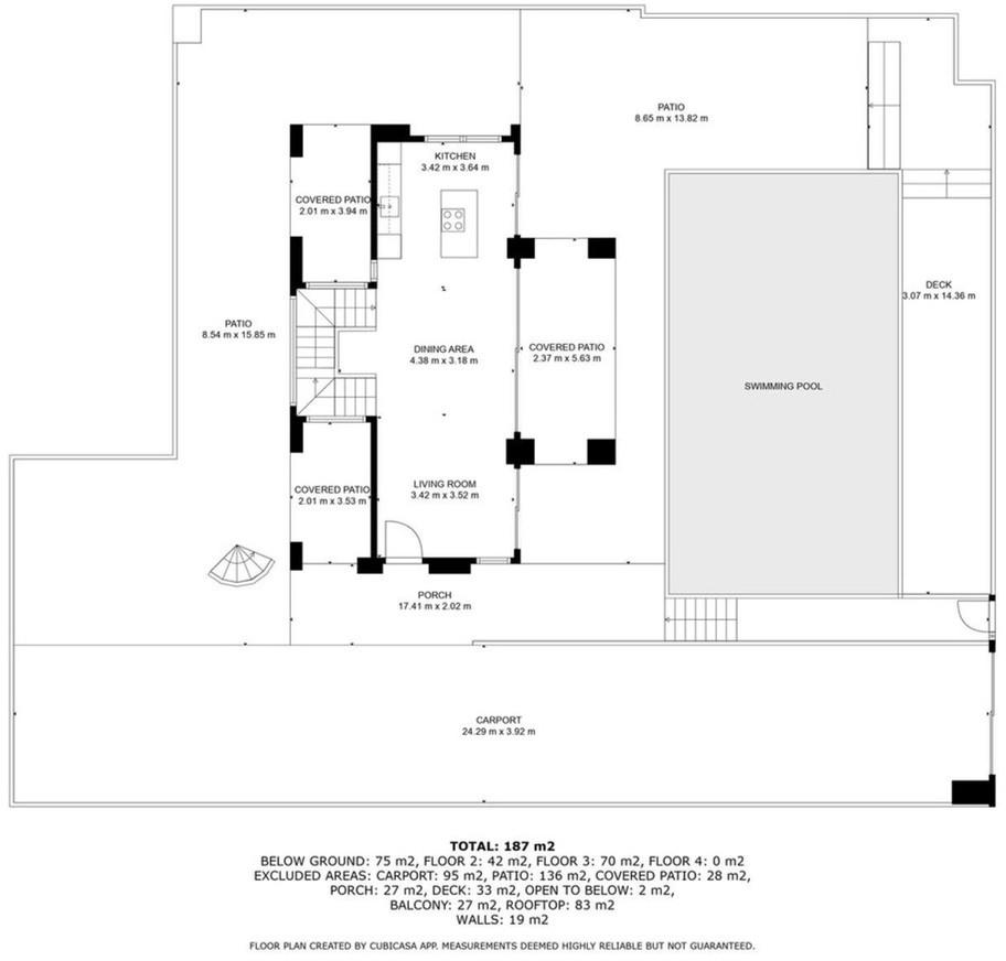 The villa is thoughtfully designed with light, space, and comfort in mind, featuring a private pool and a spectacular rooftop terrace. On the entrance level, an open-plan kitchen and dining area open onto large windows and a spacious terrace—perfect for relaxation or entertaining. The floor below offers a stylish and cozy TV room, while the upper level hosts three bedrooms with three bathrooms and a generous balcony with captivating views. The rooftop terrace crowns the property with even more impressive vistas.