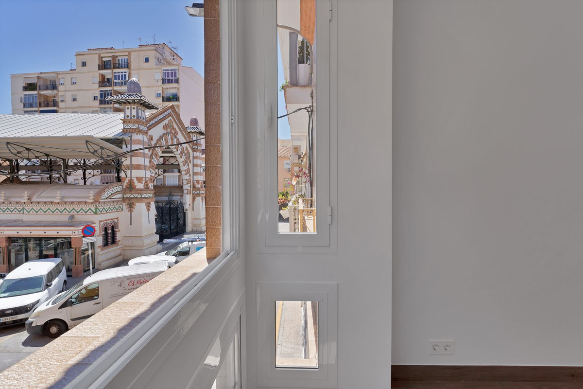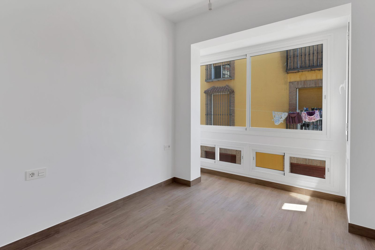 Discover this magnificent, fully renovated townhouse located on Salamanca's market square in the heart of Malaga. With a floor area of 1,700 sq ft, this property combines the old-world charm of a 1940s building with unparalleled modern comfort. Ideal for large families or those who love to entertain, it has six spacious bedrooms, including three elegant suites. Each bedroom is equipped with built-in wardrobes and closets, offering optimal storage space.